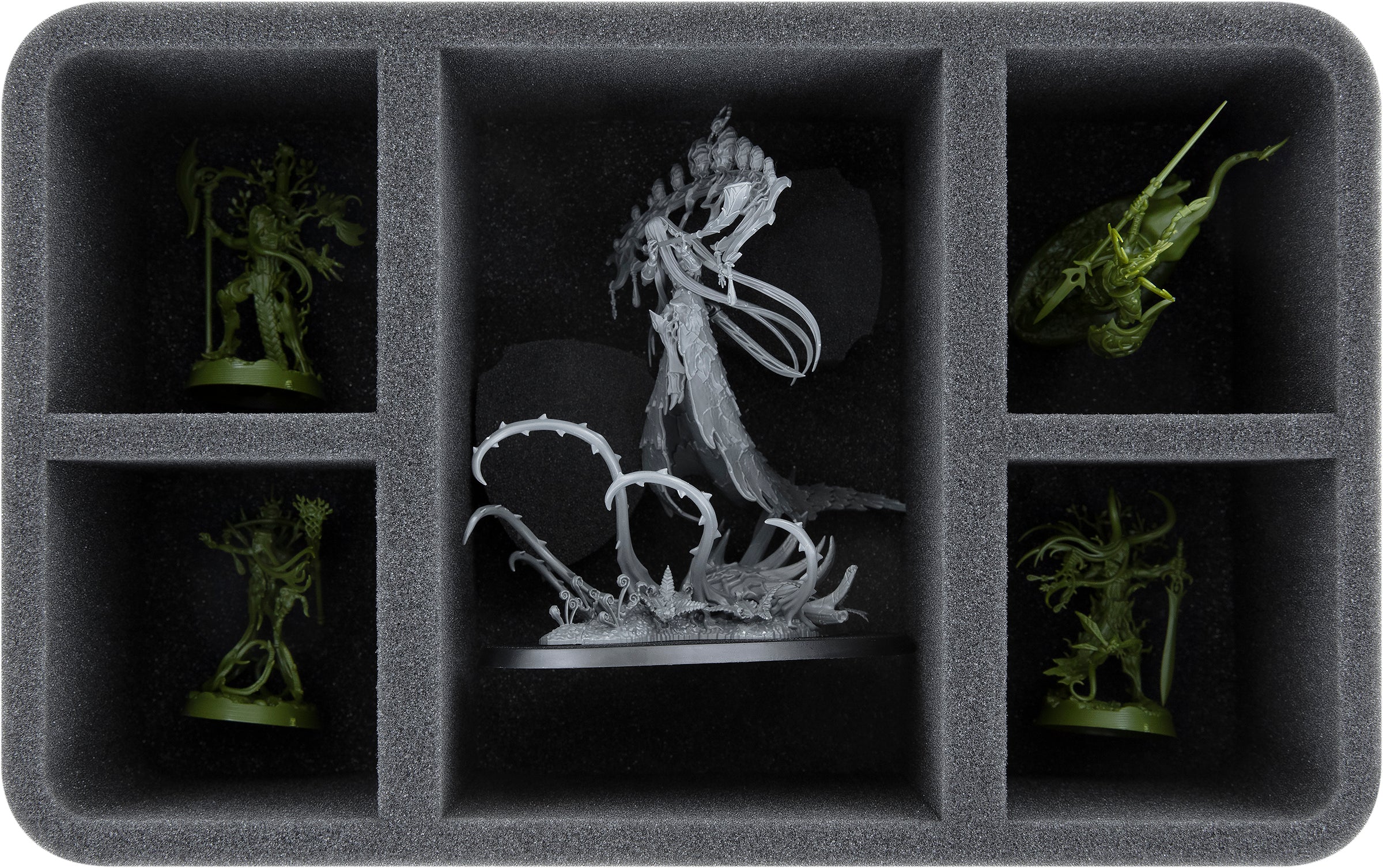 - 1 Half-Size-foam tray with 5 compartments for 1 Warsong Revenant und additional models like Tree-Revenants or Ylthari's Guardians (HSMEVL090BO)