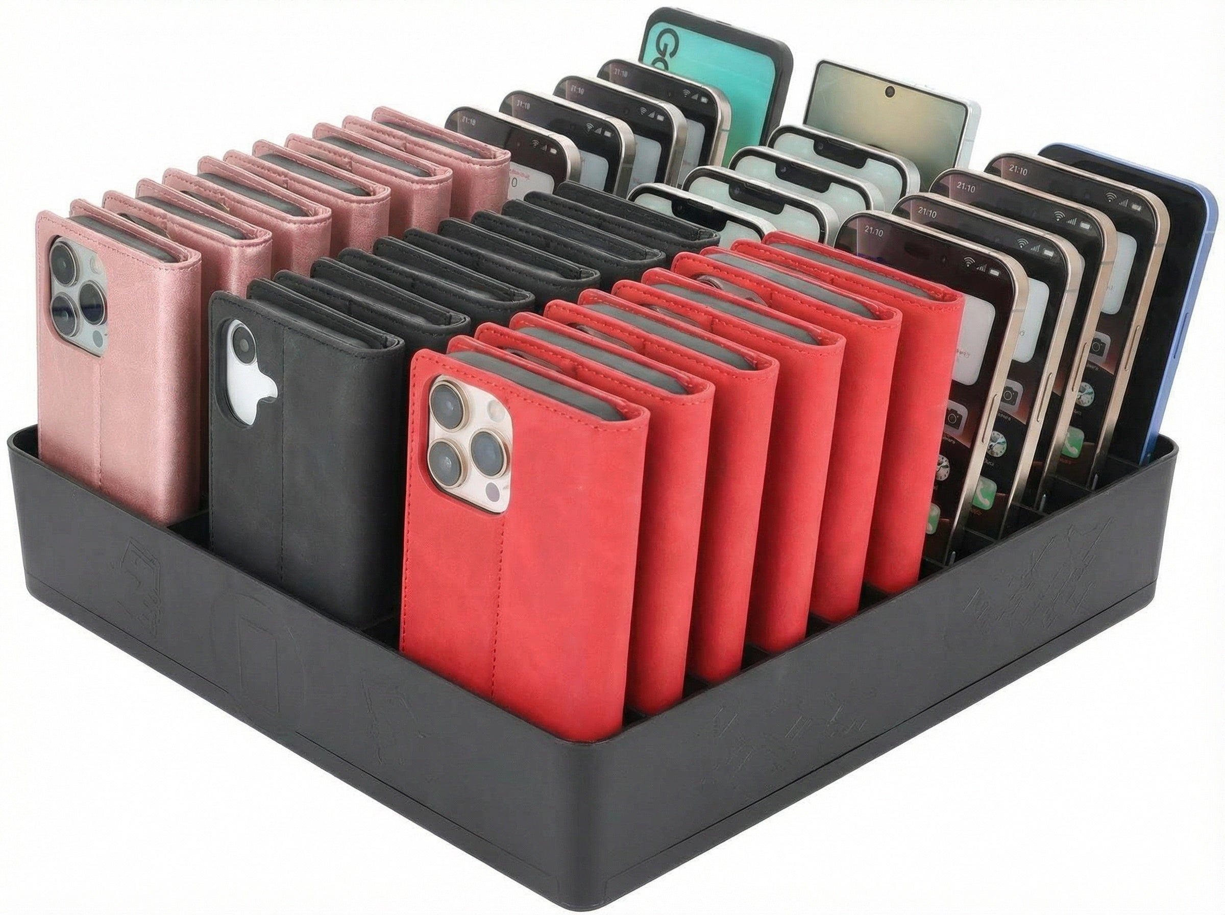 More focus in the classroom, fewer distractions: This phone parking station allows you to quickly collect smartphones at the beginning of class and store them in an organized manner. The 33 extra-spacious compartments are deliberately oversized – perfect for wide phone cases and larger smartphones, especially flip cases (Book Cases, Wallet Cases, Folio Cases, Flip Cases). Devices stay securely stored while focus remains on learning.