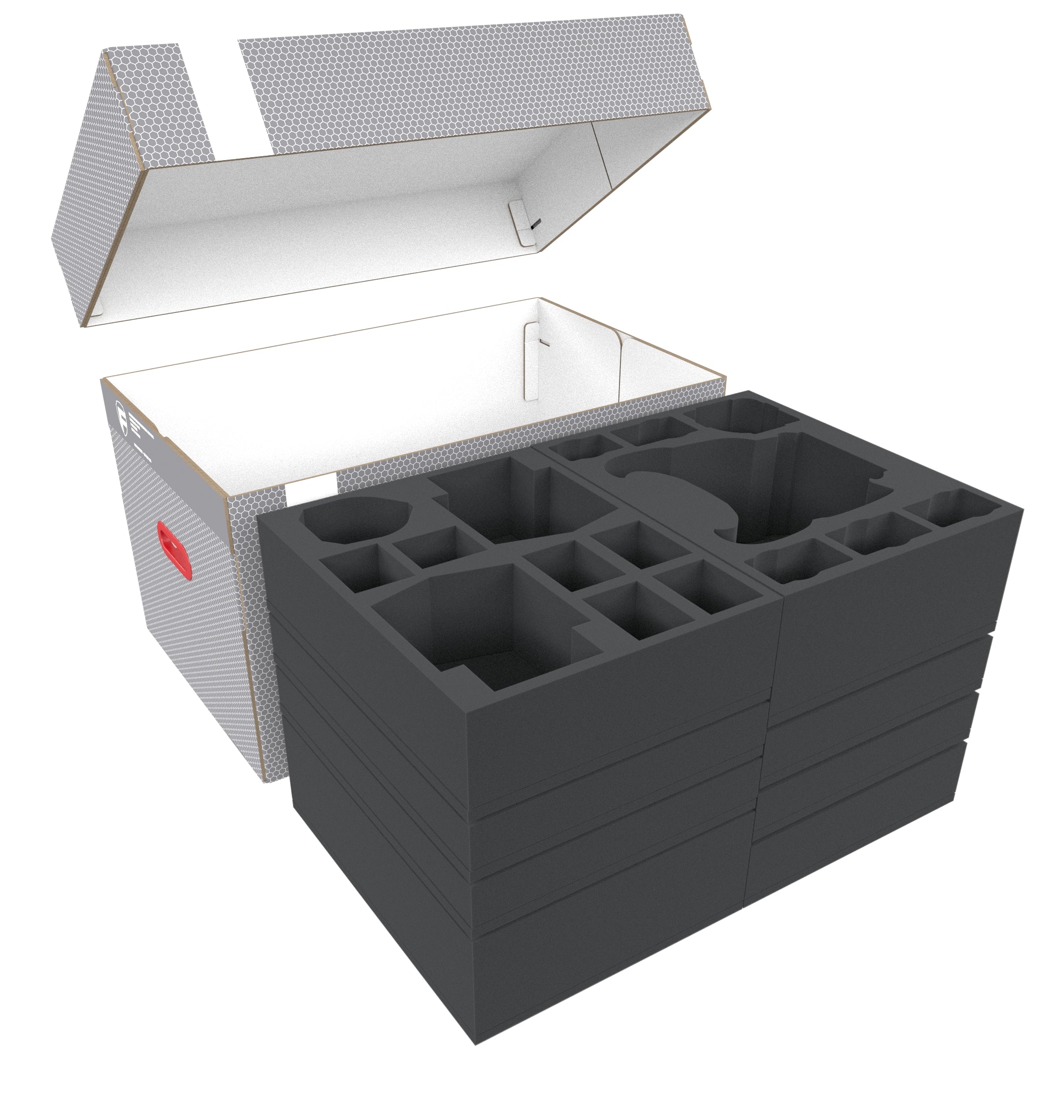 This Chaos Box is rounded off with the matching foam topper. This ensures that the miniatures in the upper tray are protected all around and do not hit the lid of the box.