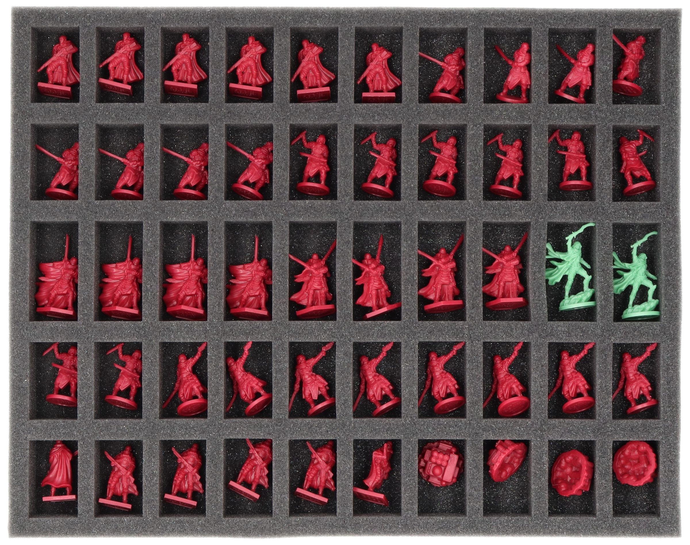 - 1 Full-Size foam tray with 13 compartments for miniatures, cards, and game material (FSLG050BO)