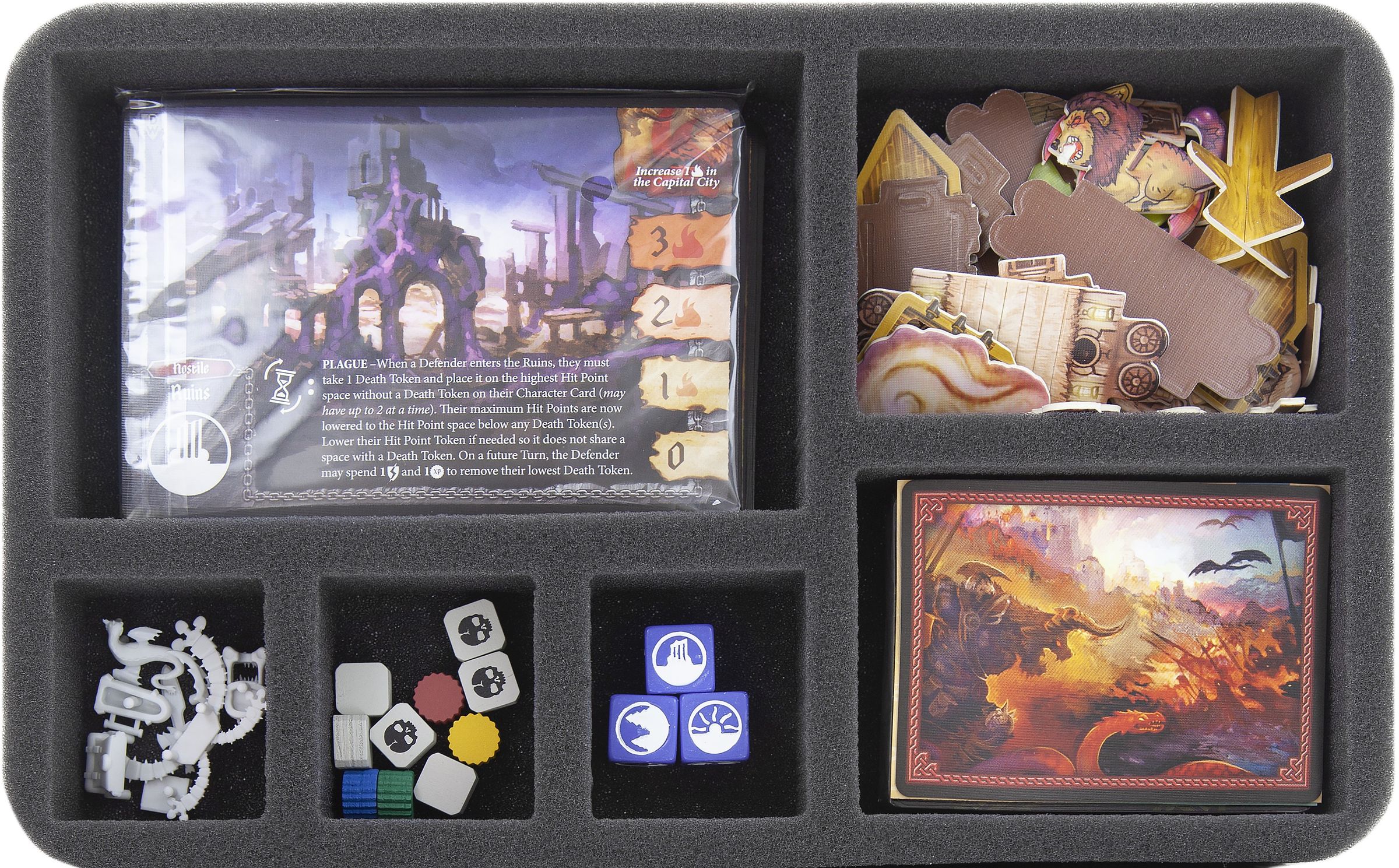 - 2 foam trays each with 6 compartments for Tiny Epic: Defenders and Tiny Epic: Defenders – The Dark Wars (HSMEPK040BO)