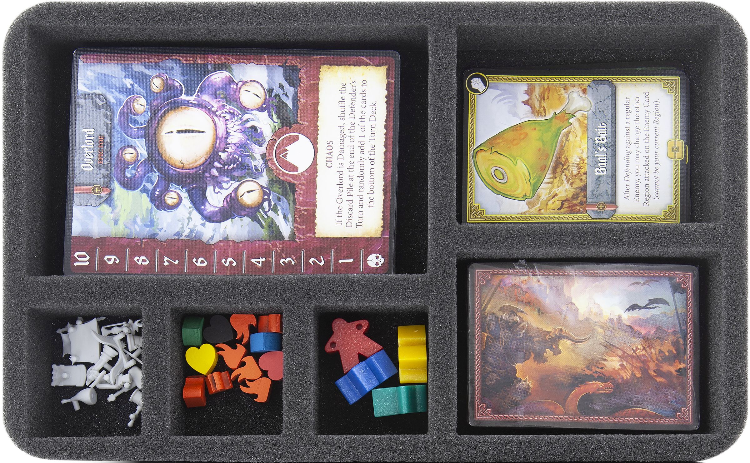 So that all your game components from the "Tiny Epic: Defenders“ box and the "Tiny Epic: Defenders – The Dark Wars" expansion are orderly stored and easily transported, Feldherr offers you this Storage Box FSLB040 with the matching foam trays.