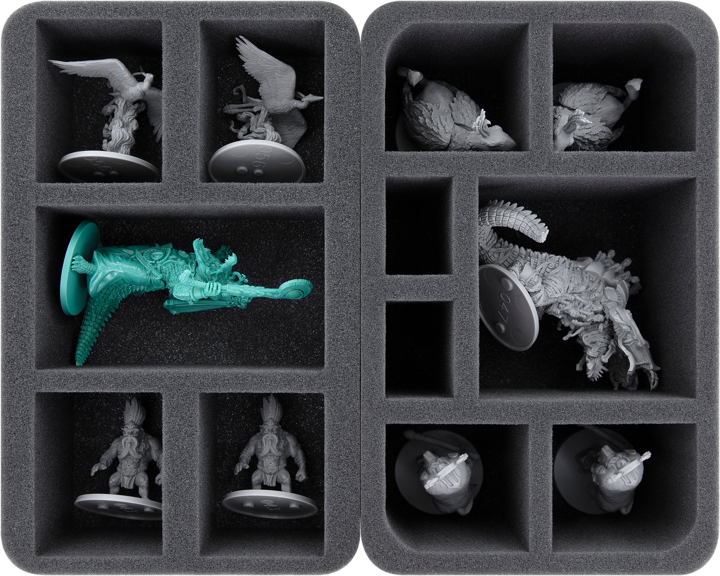 No matter if it's the creator Ptah himself, the giant Petsuchos, or a simple Sobek warrior. Each figure gets the appropriate compartment. Surrounded by soft, fine-pored foam, your figures are optimally protected during every transport. Scratches and chipping paint on your painted figures, you need to fear as little as broken details of your miniatures.