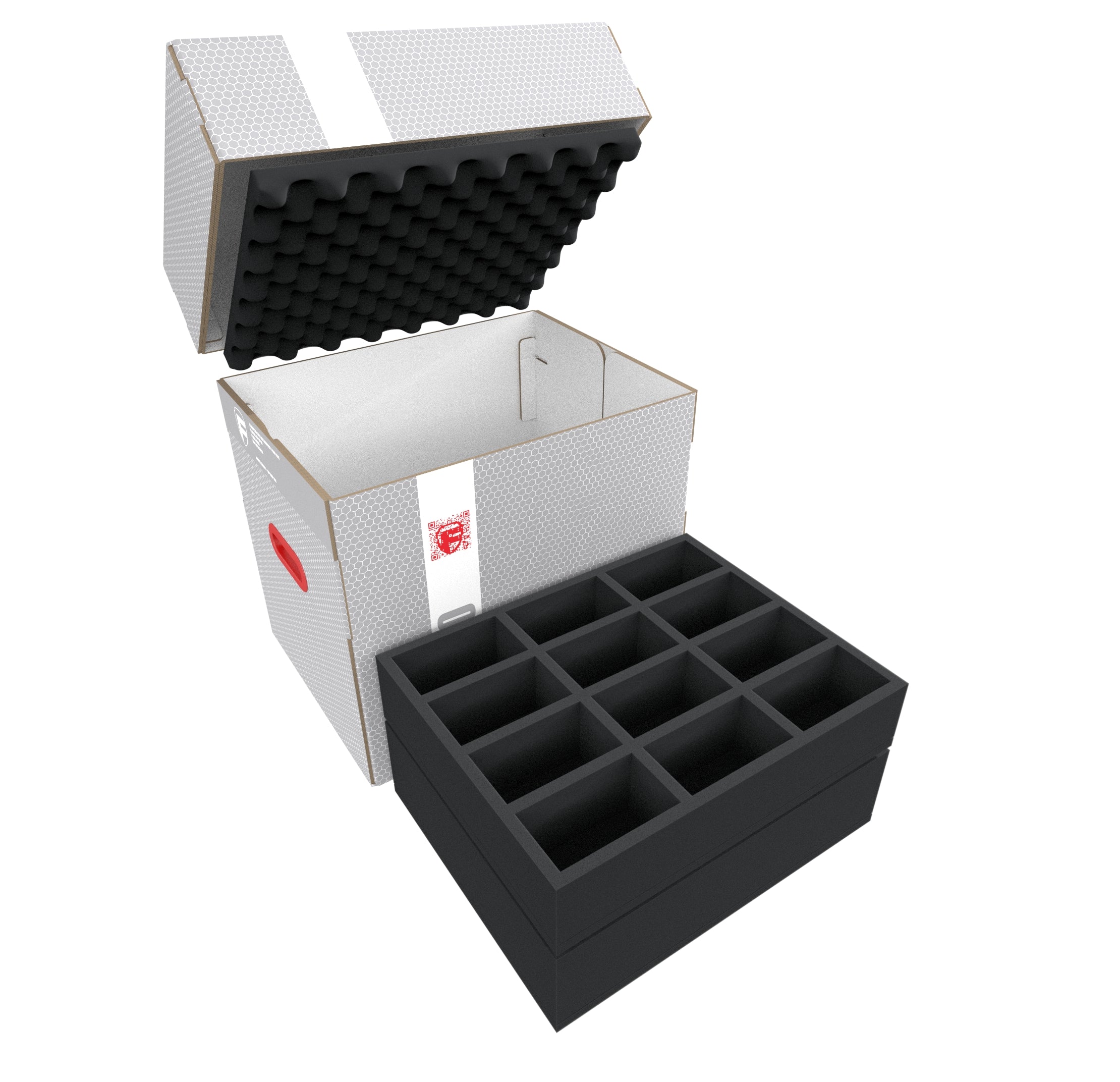 The set is completed by the matching convoluted foam. Just place it on the uppermost tray to ensure that no Amiibo can fall out.