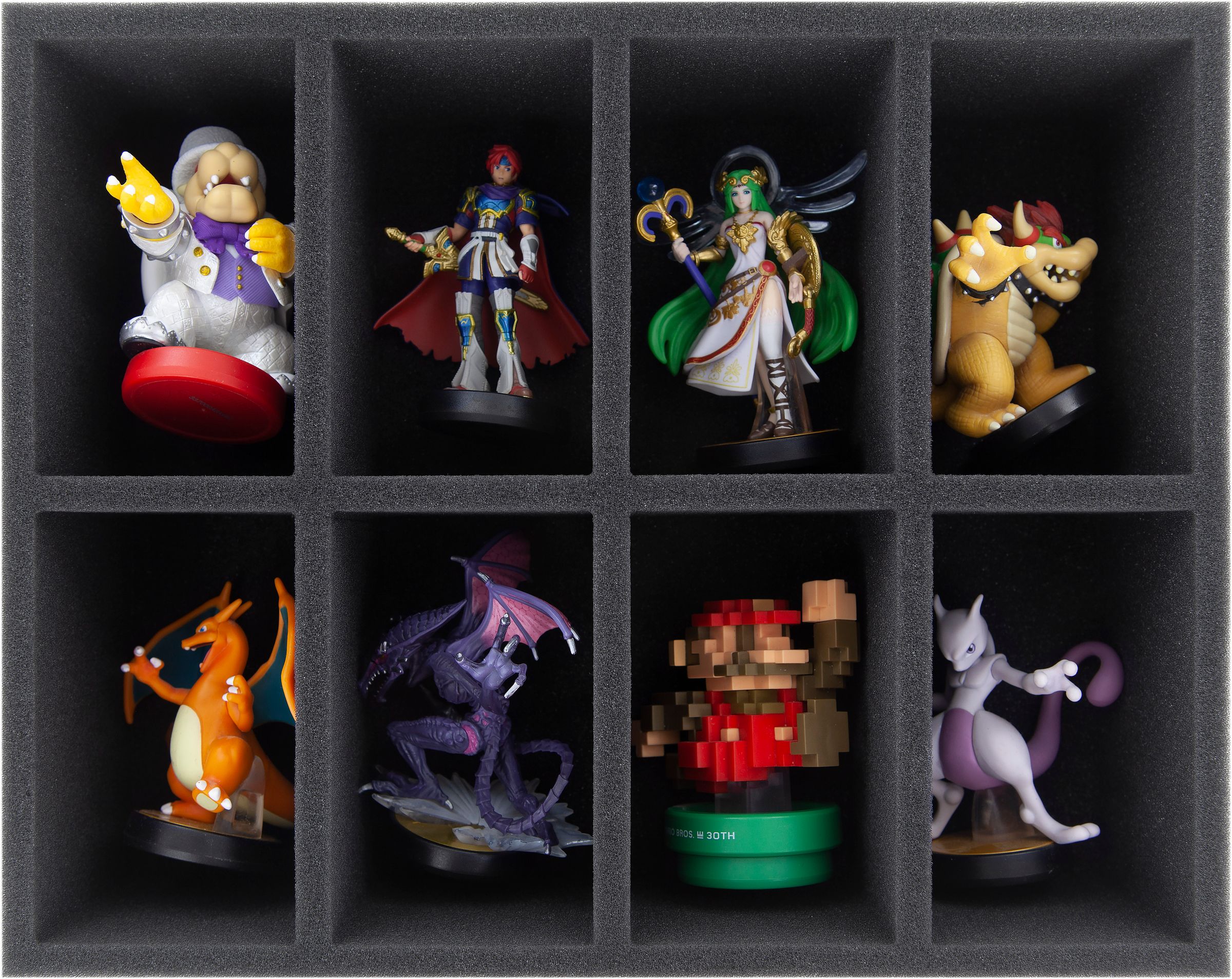 - 1 foam tray with 8 compartments for larger Amiibos (FSMEFC090BO)