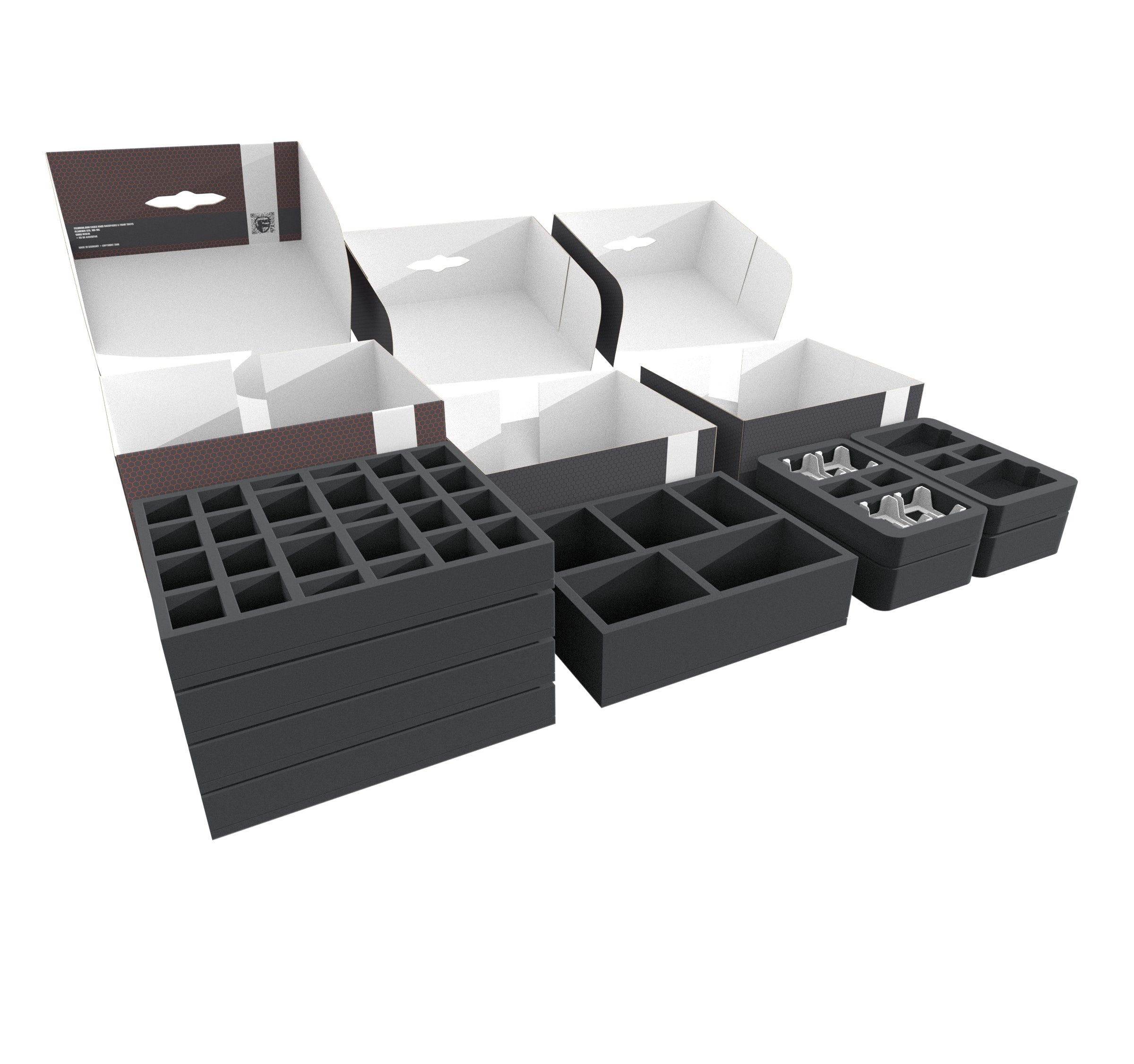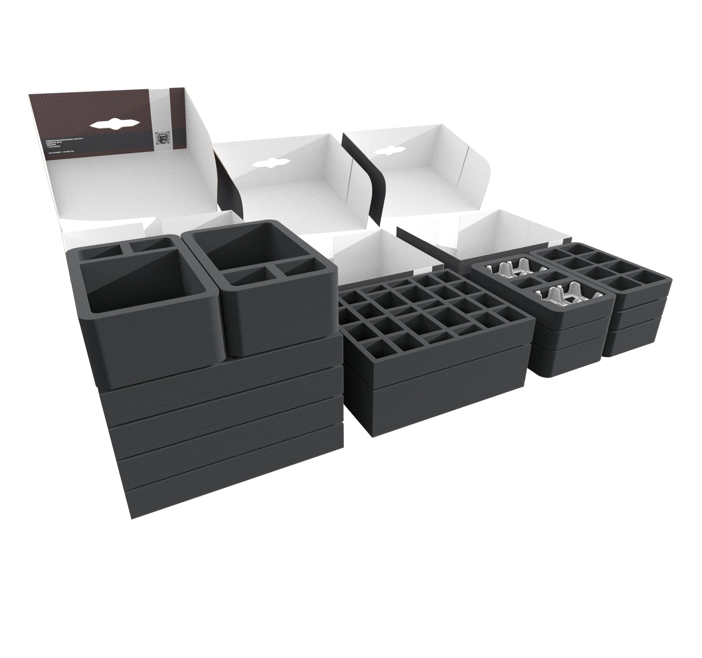 - 2 Half-Size foam trays with 5 compartments each for large and protruding miniatures (HSMFGD060BO)