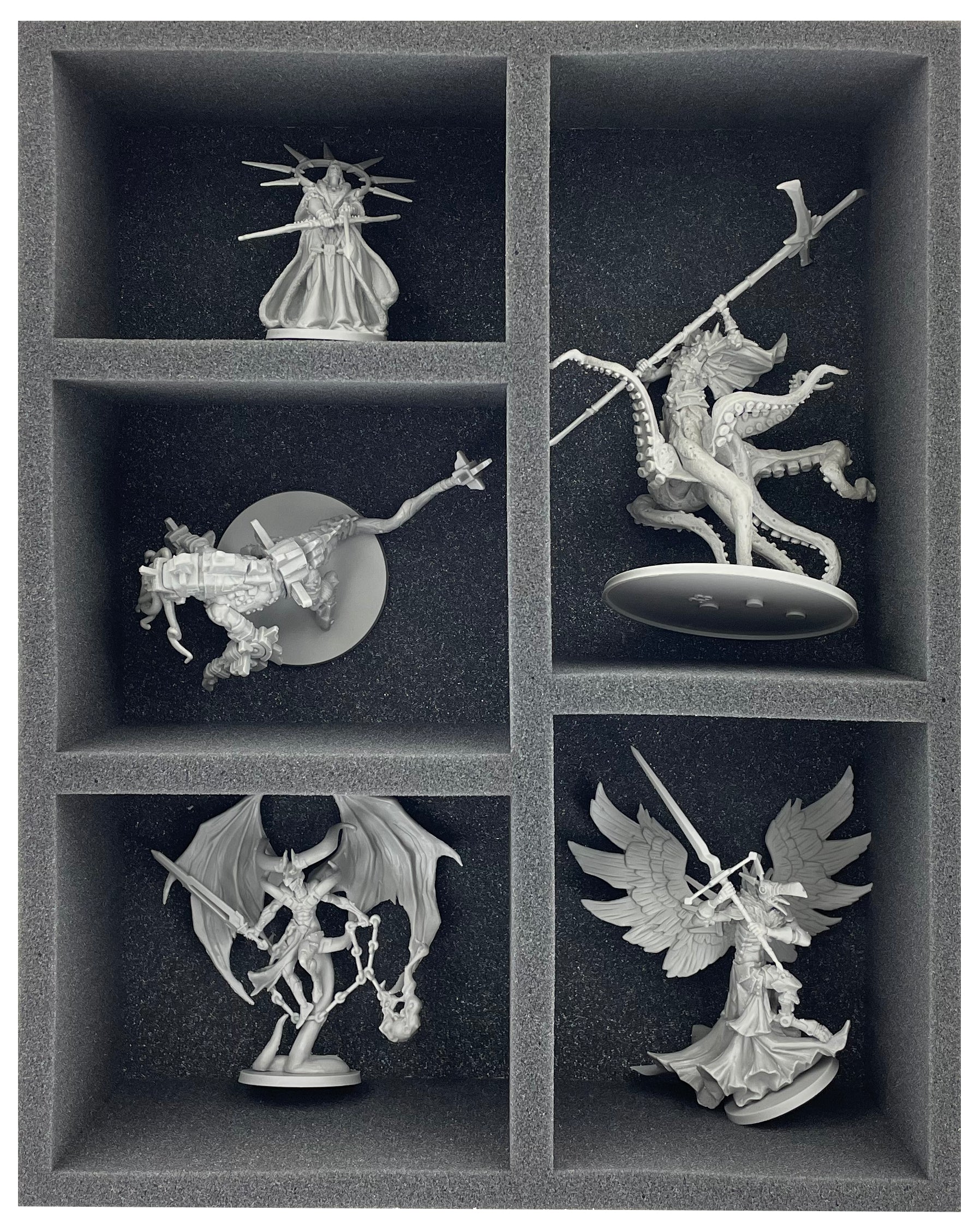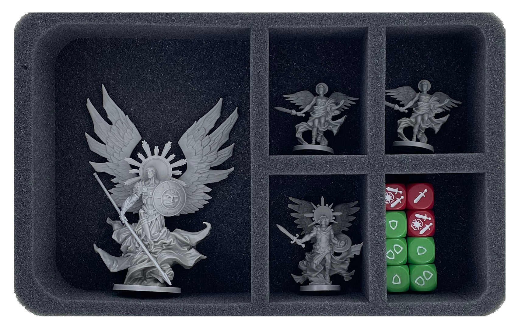 - 1 Full-Size foam tray with 5 compartments for large miniatures like Archangel Michael (FSMFBQ095BO)