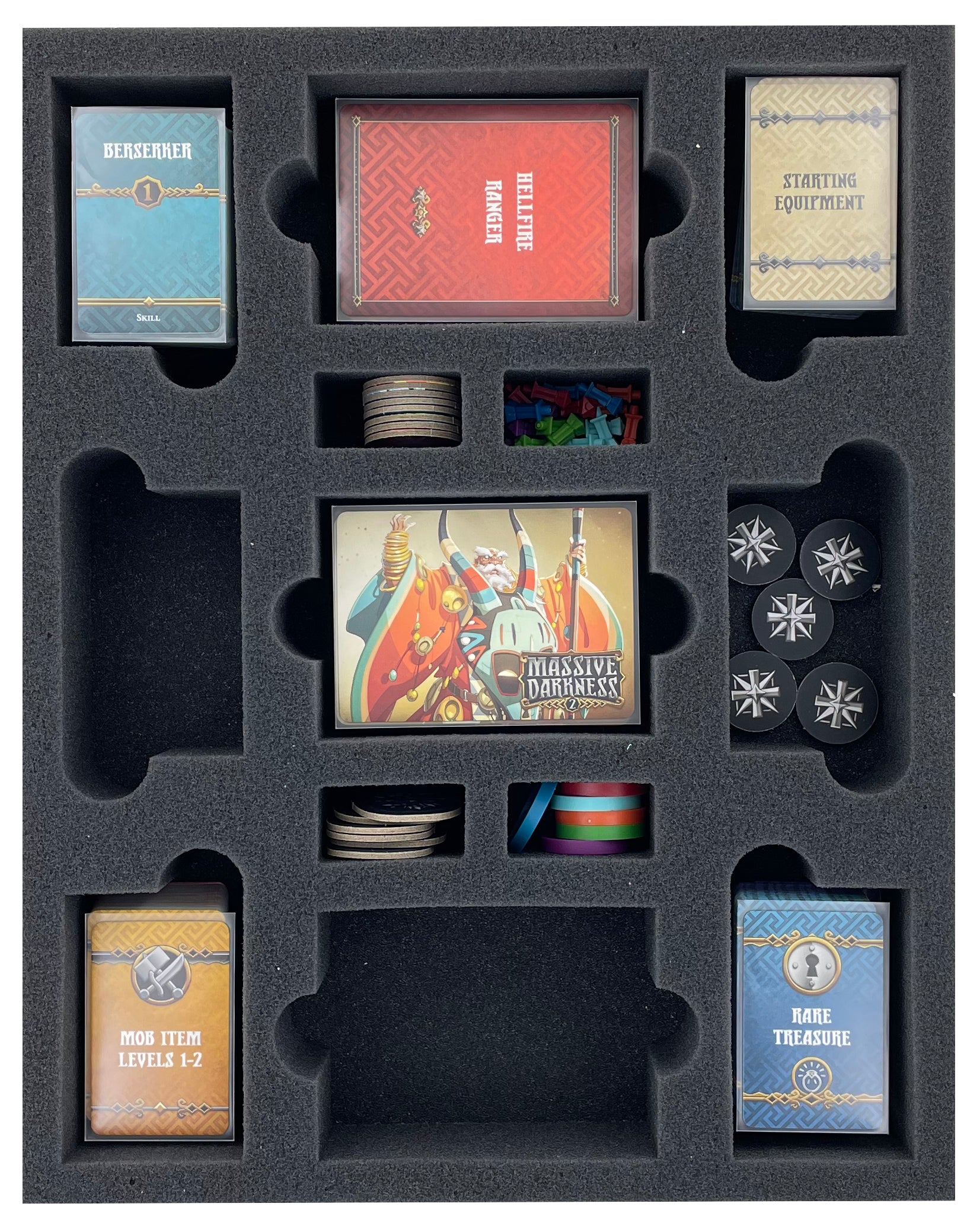 - The Storage Box Set offers space for all 78 miniatures and the entire game material from the “Massive Darkness 2: Hellscape” core game and the “Heavenfall: Campaign Mode” expansion.