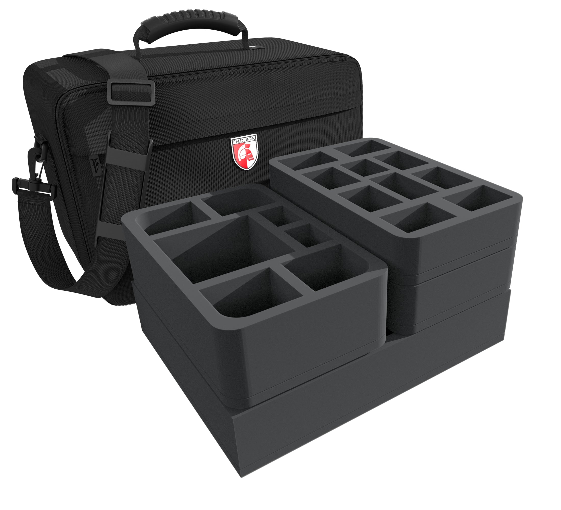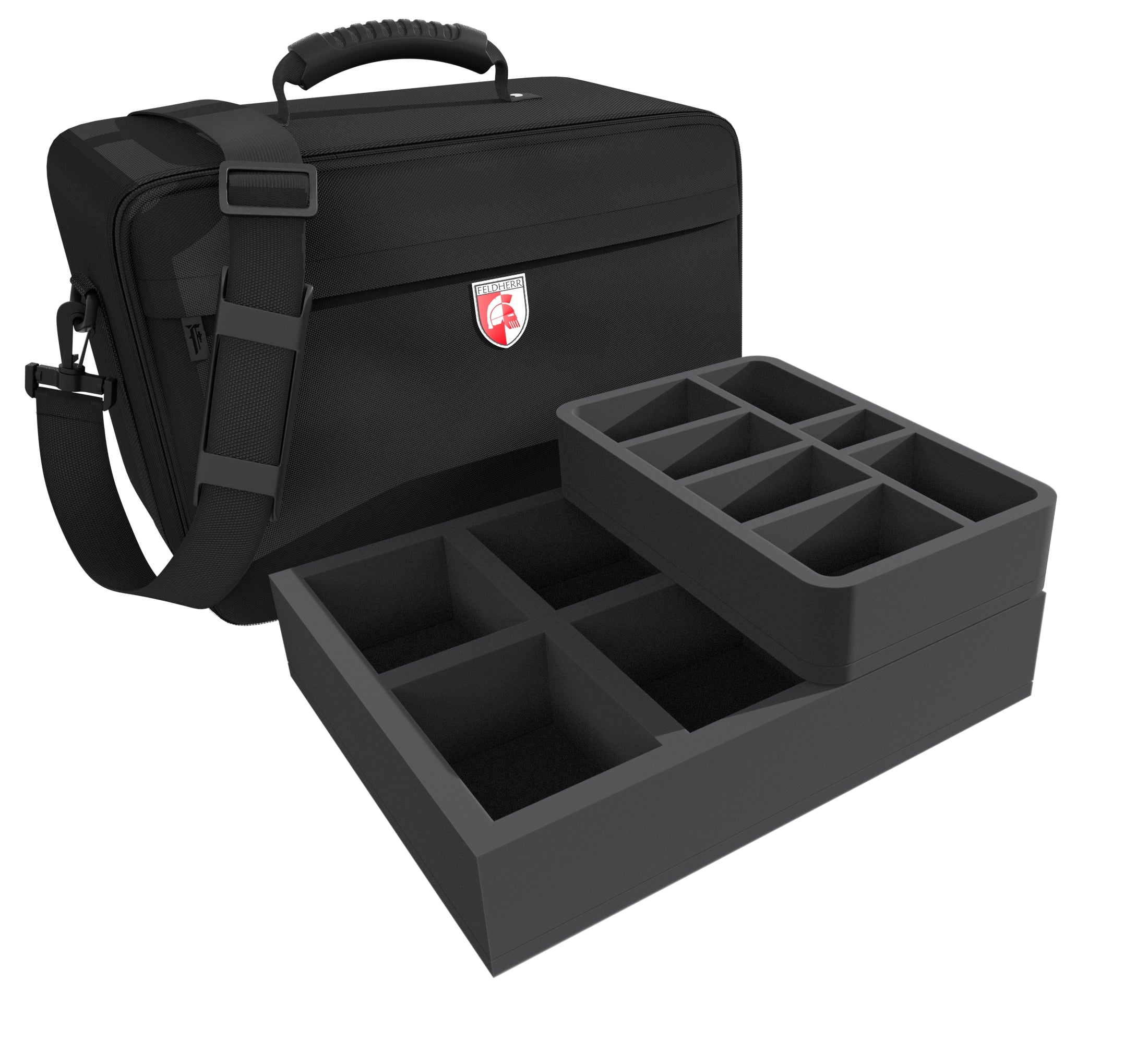 In this sturdy MAXI PLUS bag your miniatures are optimally protected. You can safely transport up to 49 warrior figures to the battlefield in the custom Feldherr foam trays.