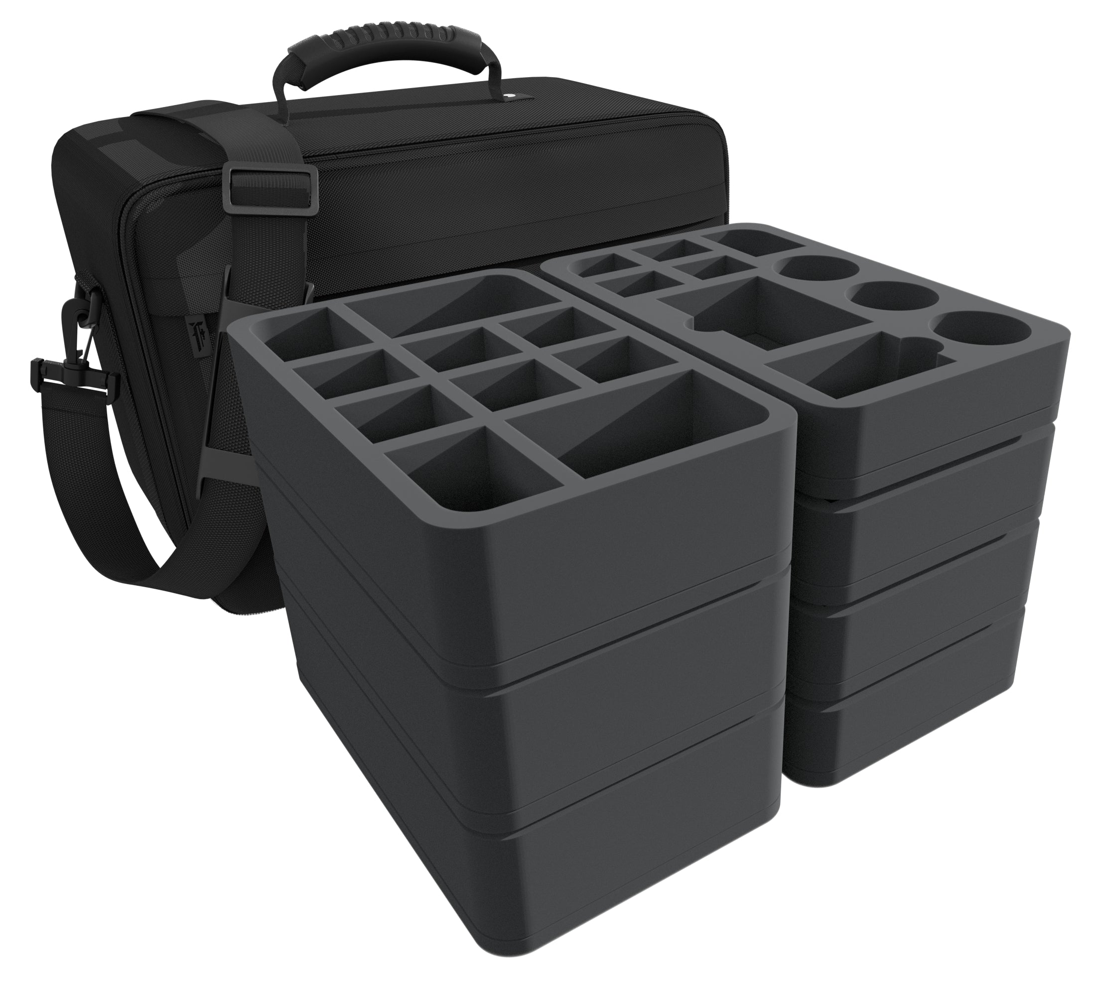 To protect your miniatures, we've packed 7 Feldherr Half-Size foam trays into the bag. No matter if Warjack or Imperial Weaver, each miniature gets its own compartment.