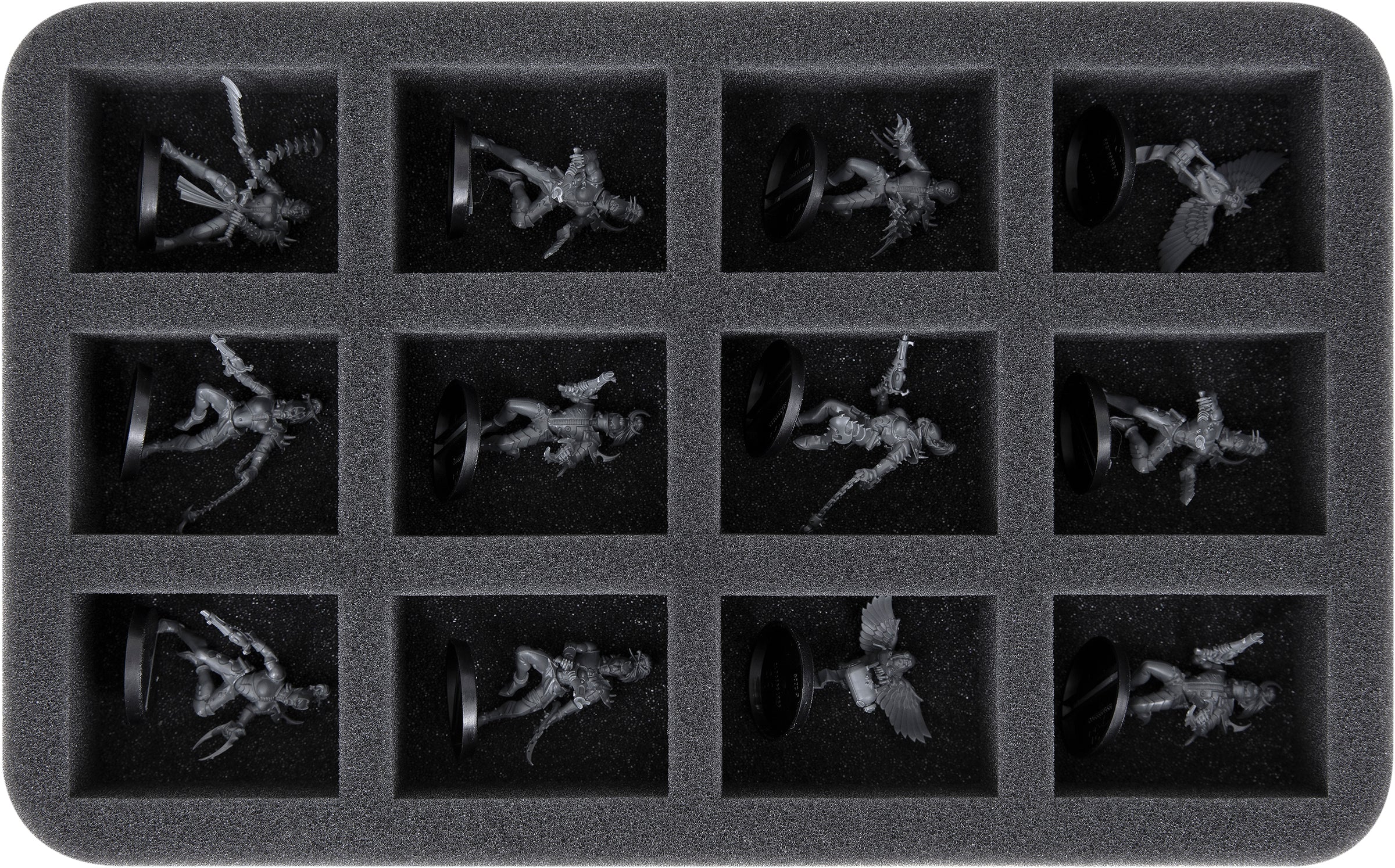 - 2 Half-Size foam trays with each 12 compartments for standard infantry such as Storm Guardians, Guardian Defenders, Rangers and models with similar dimensions (HS040A026)