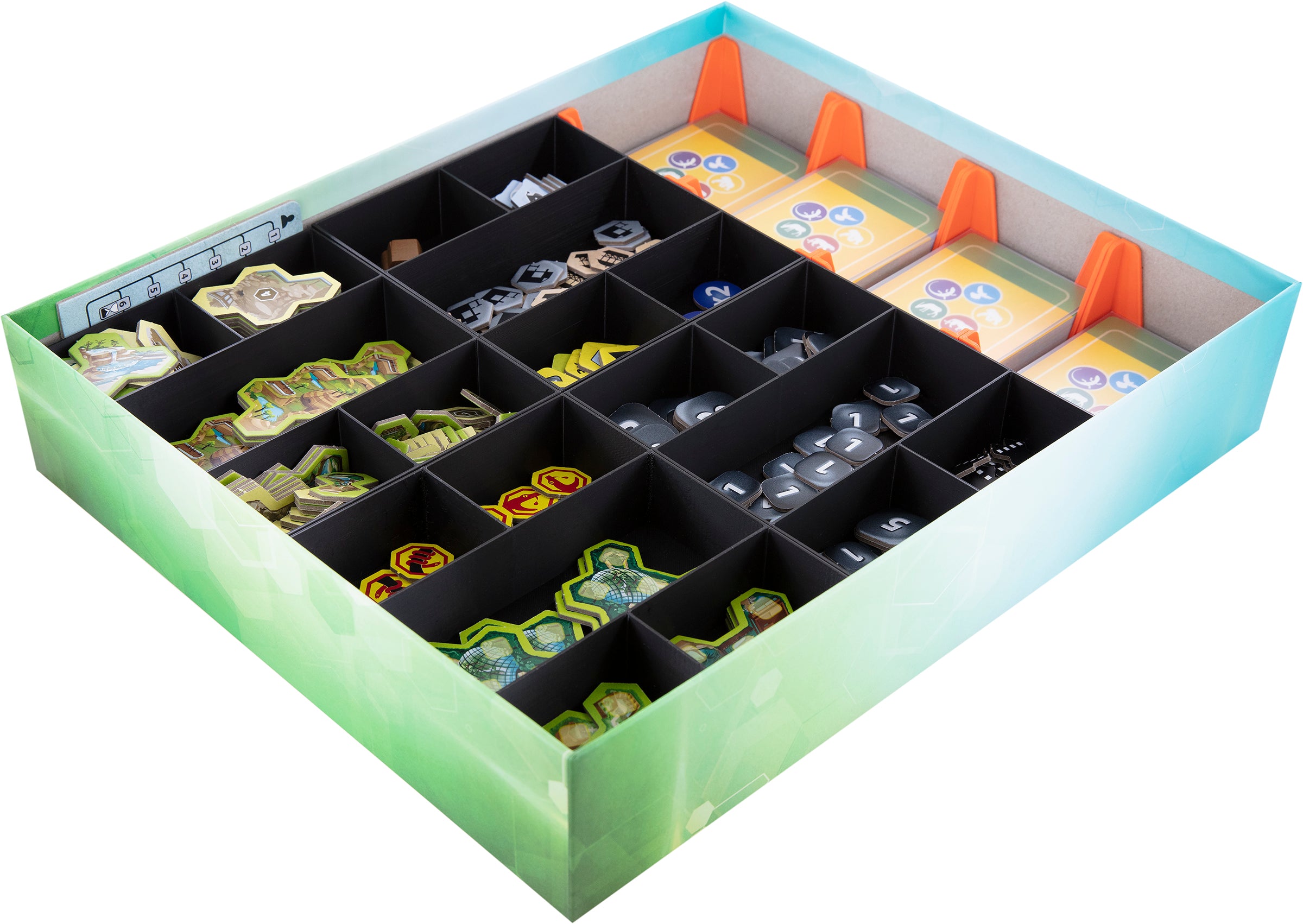Customised board game organisers and practical game aids bring order to your box and gaming table – quickly becoming an indispensable upgrade for your game collection.