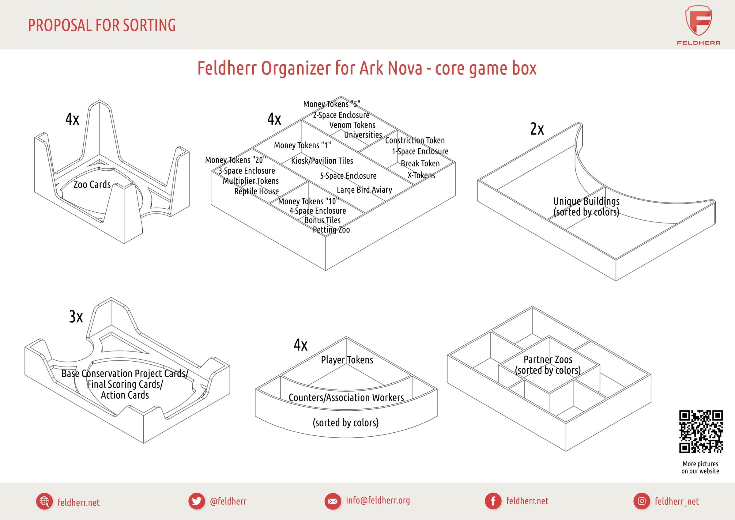 - The Organizer provides room for the entire game contents from the "Ark Nova" core game.