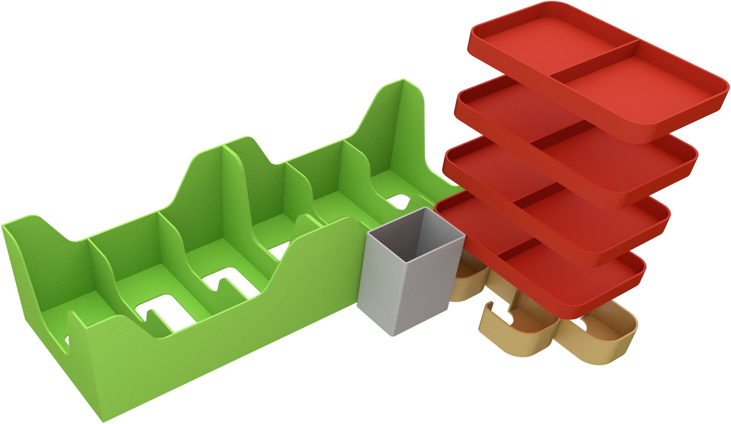 To ensure you have flag-tastic fun, we’ve brought order to your board game box. Our Organizer includes 2 card holders and 8 token trays, sharing the box with the originally supplied plastic inserts. Your game materials stay organized thanks to the trays and practical card separators. Take the inserts out of the box and distribute them on the tabletop for a quick start. Place a token tray and trophy holder on the playmats to keep your tokens and trophies in place. After the game, store everything back in the trays and core game box. You’ll be ready for the next round in no time.