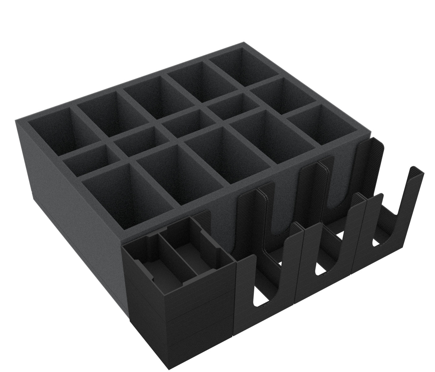 - Innovative combination of plastic inserts and foam mats for compact and well-protected storage of smaller miniatures.