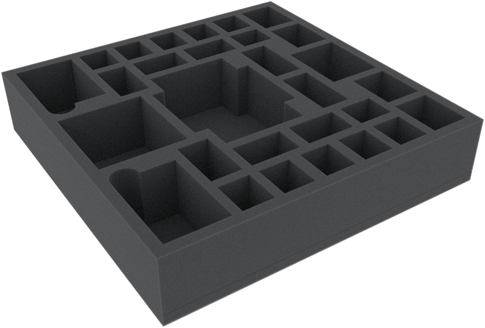 - The foam tray has the dimensions: 295 mm x 295 mm x 60 mm total height (50 mm usable height + 10 mm foam base)