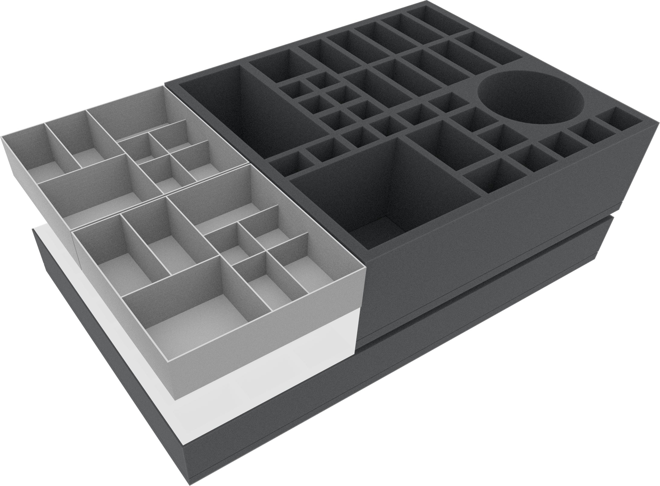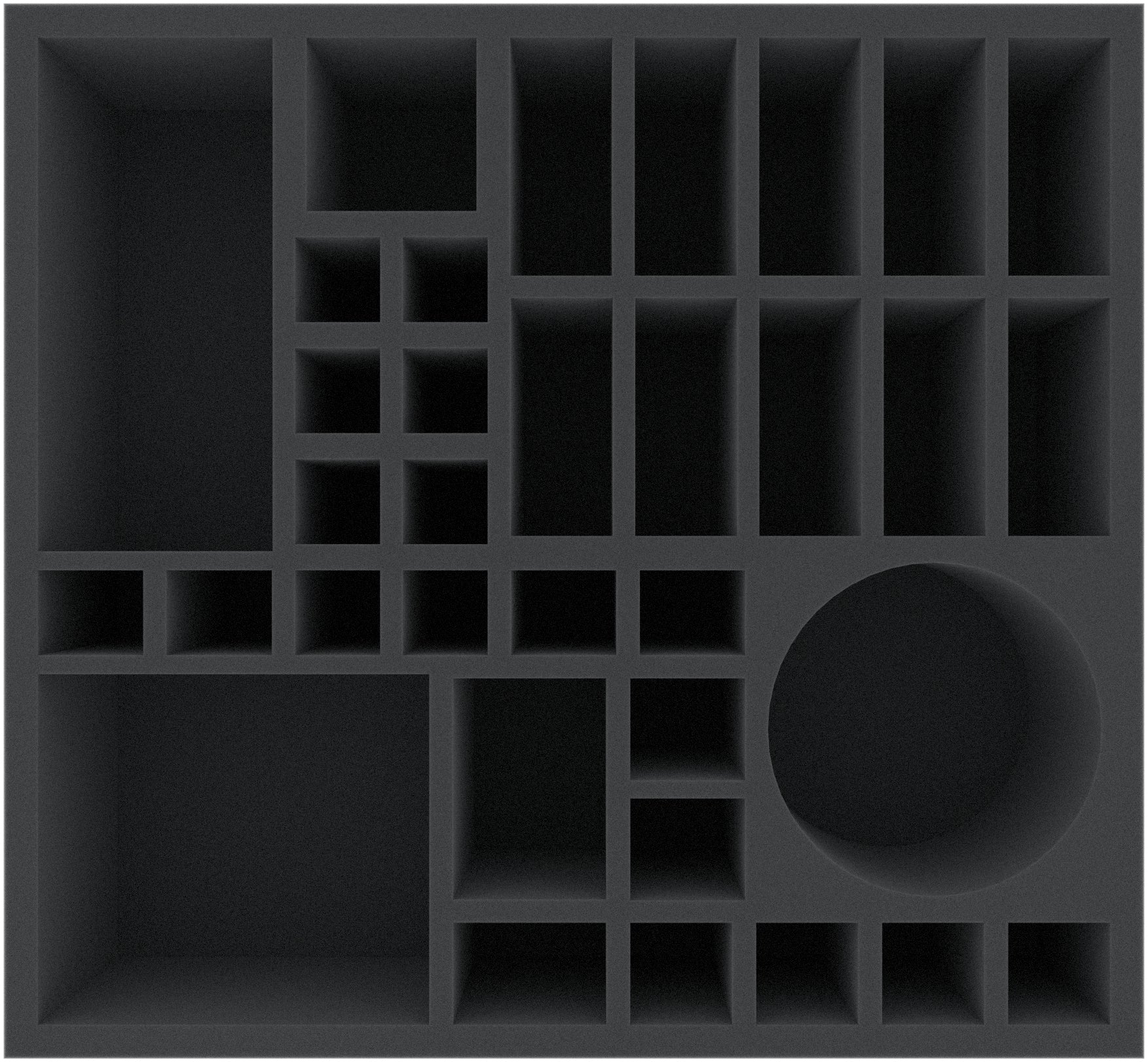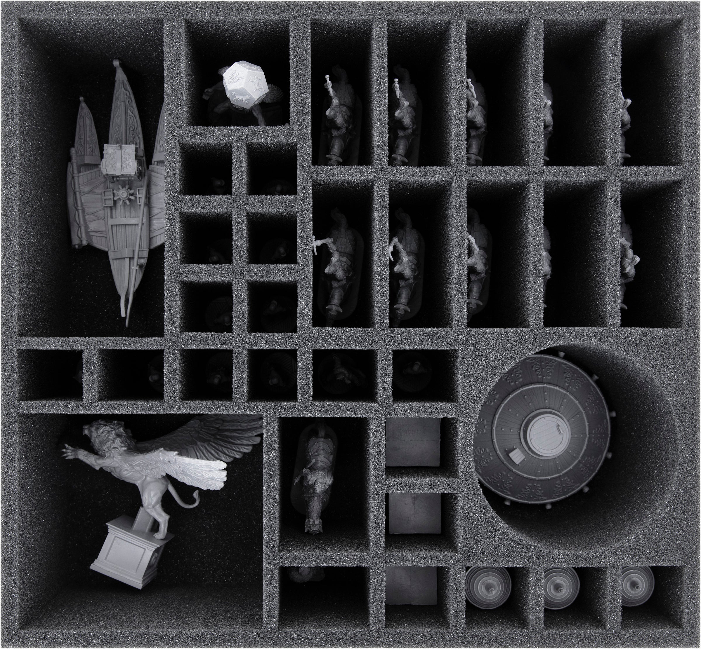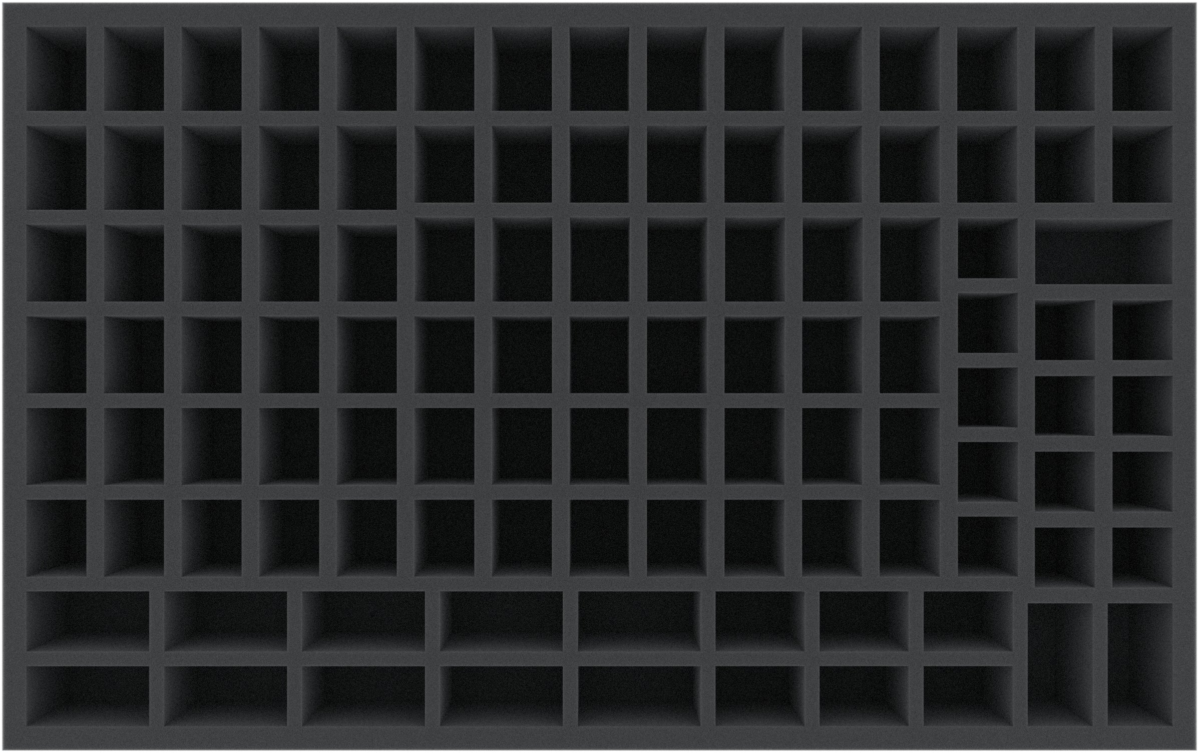• 1 Feldherr foam tray with 110 compartments for smaller miniatures like Characters, Crossbowmen, Brutes, Courtesans, Chests, and miniatures of the same size.