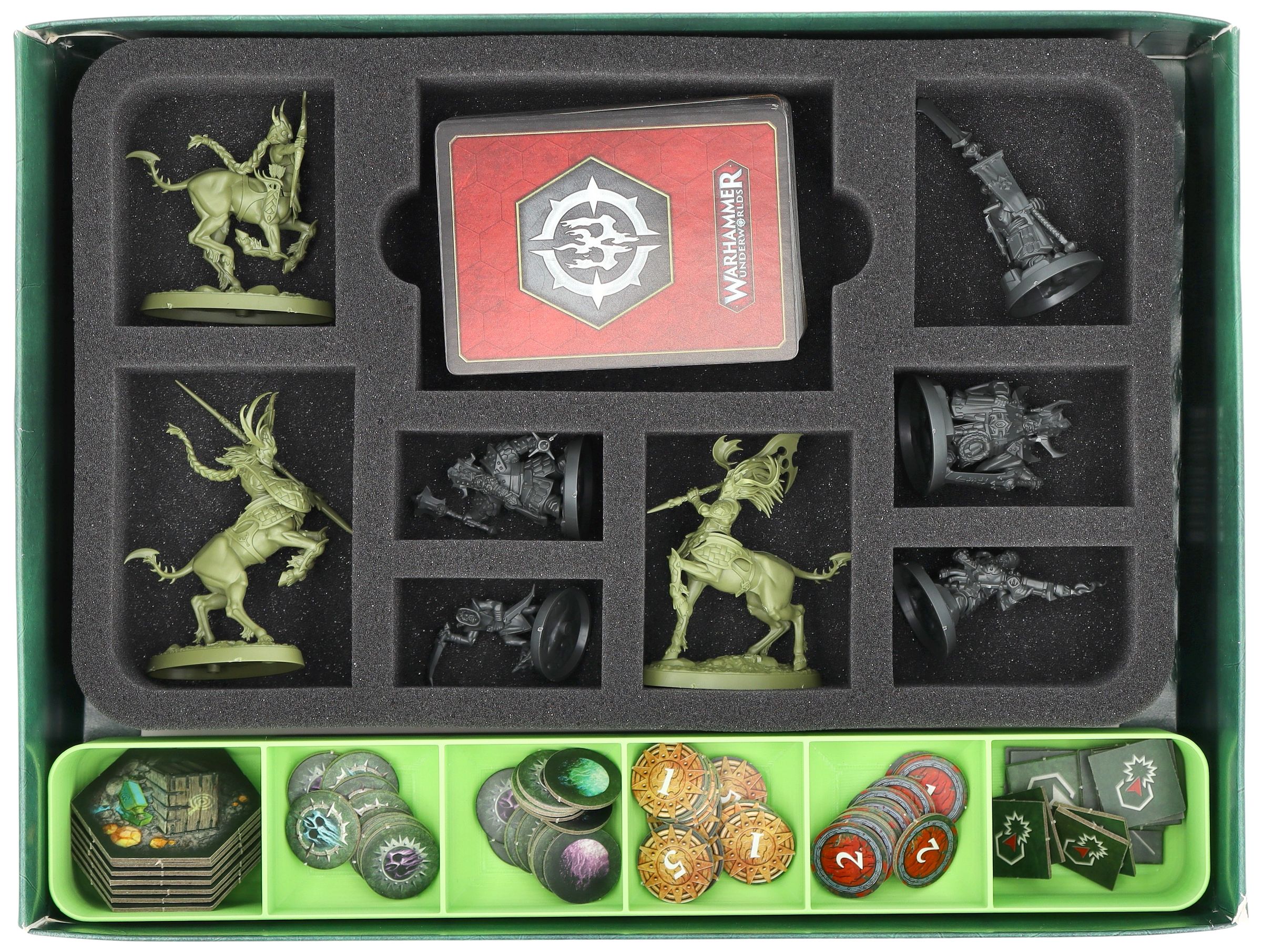 - The set fits perfectly into the original Warhammer Underworlds: Spitewood base game box (total dimensions of the insert: 275 x 216 x 50 mm).