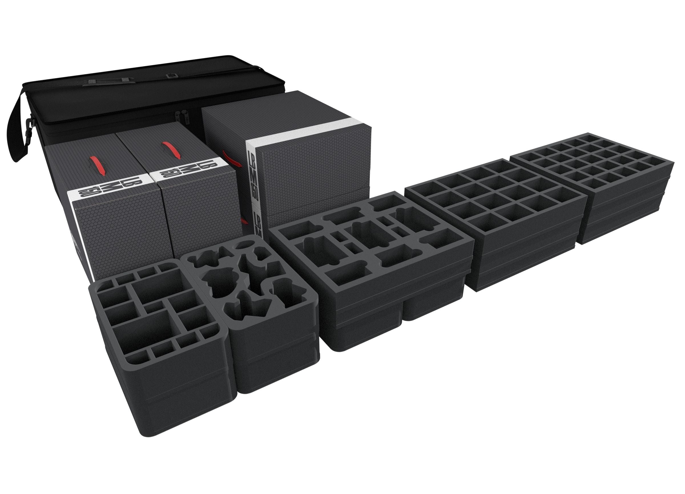 - 2 Full-Size foam tray each with 25 compartments for miniatures (FSLQ050BO)