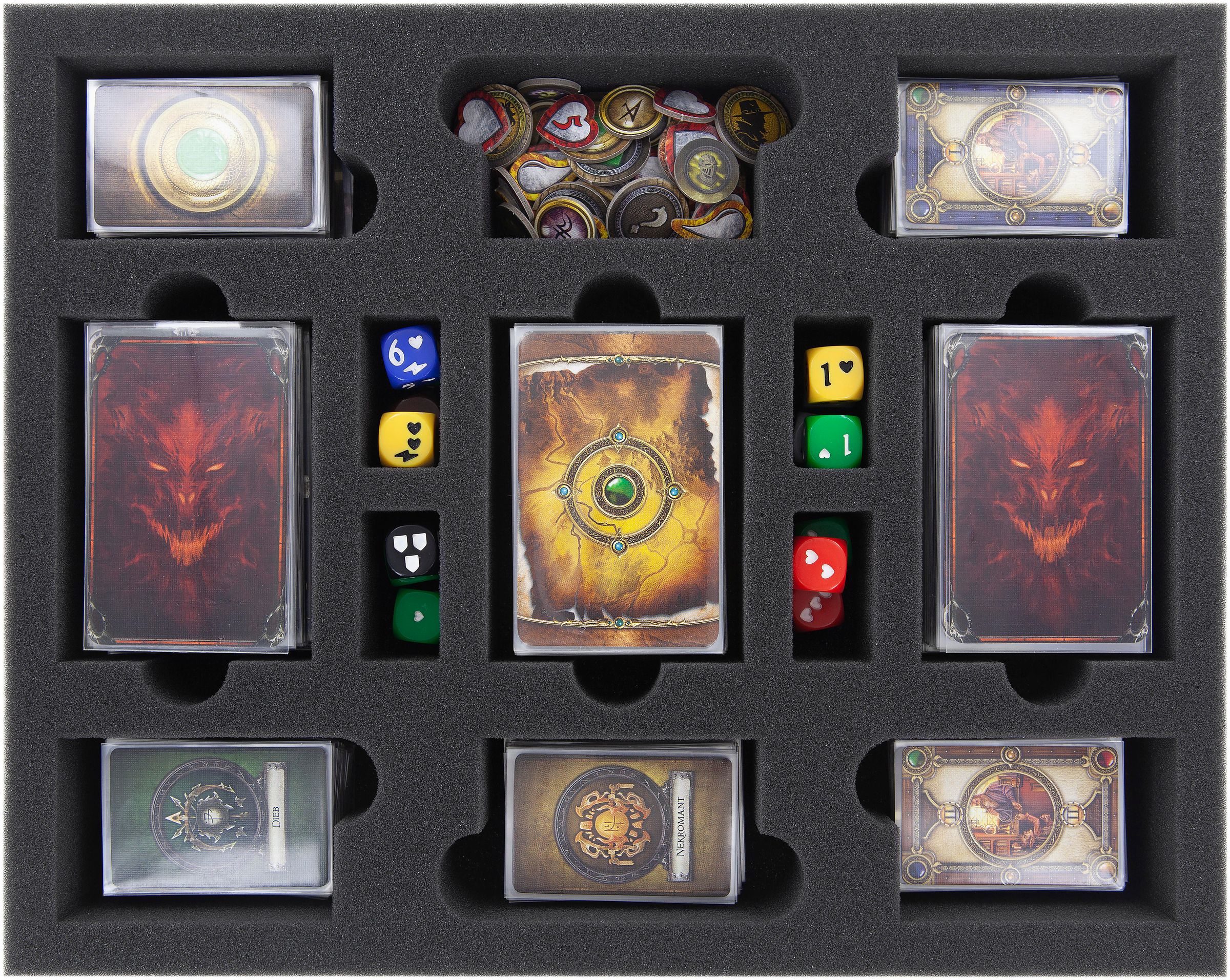 - 1 Full-Size foam tray with 13 compartments für cards, tokens and dice (FSLG050BO)