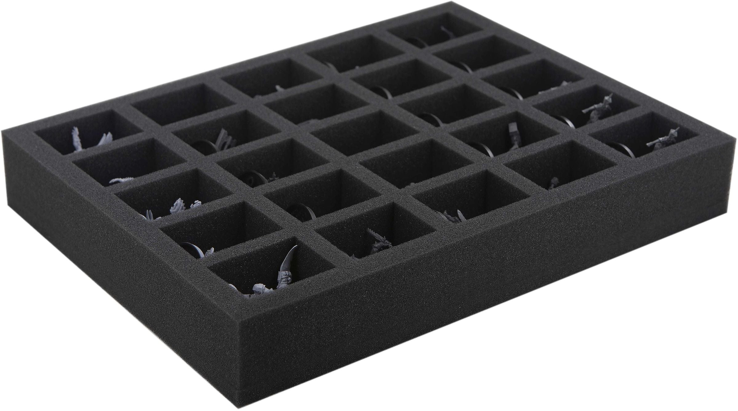 The 25 same-sized compartments are ideally suited for tokens, dice and small miniatures. The fine-pored foam provides the best possible protection for your game material.