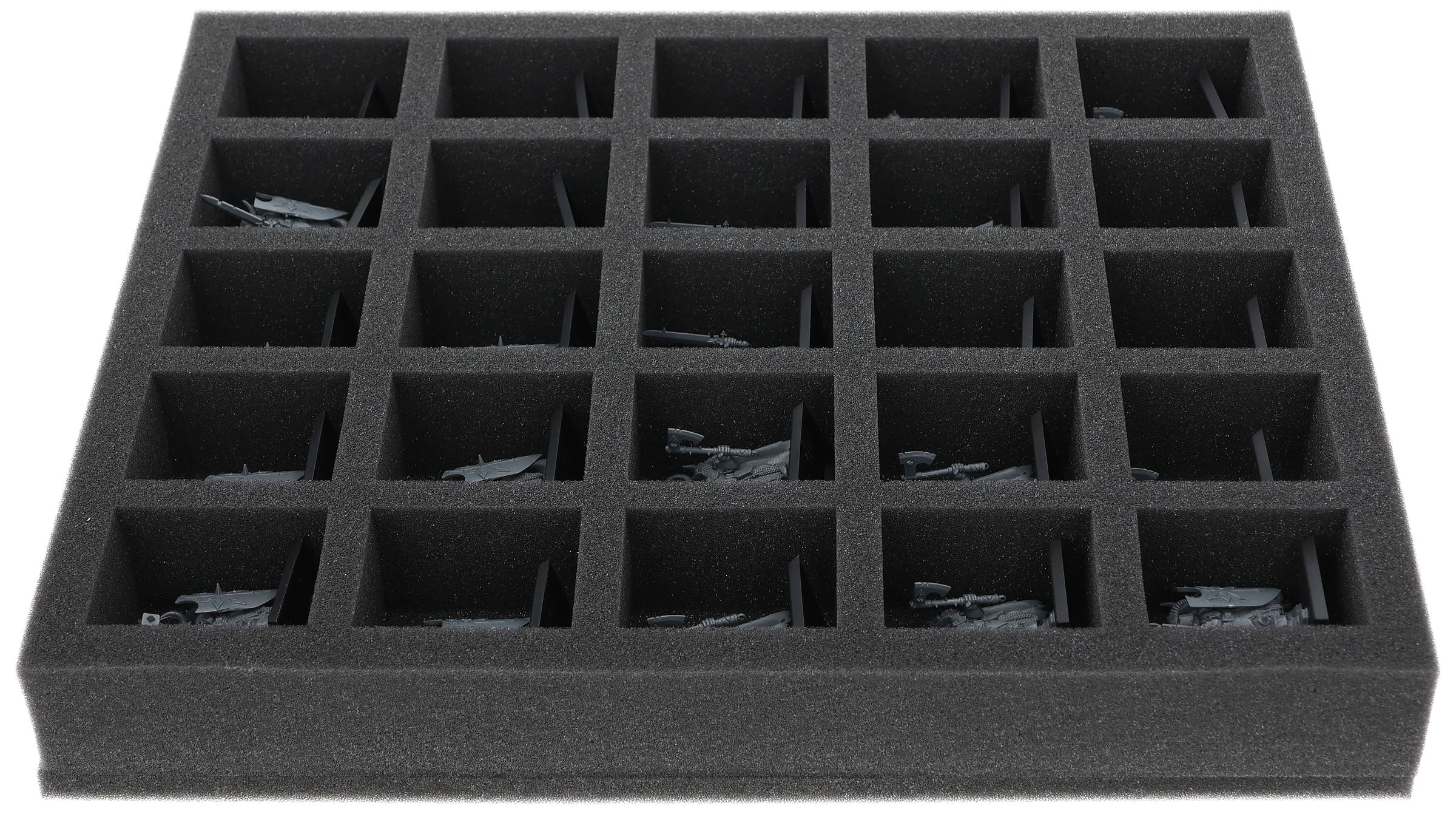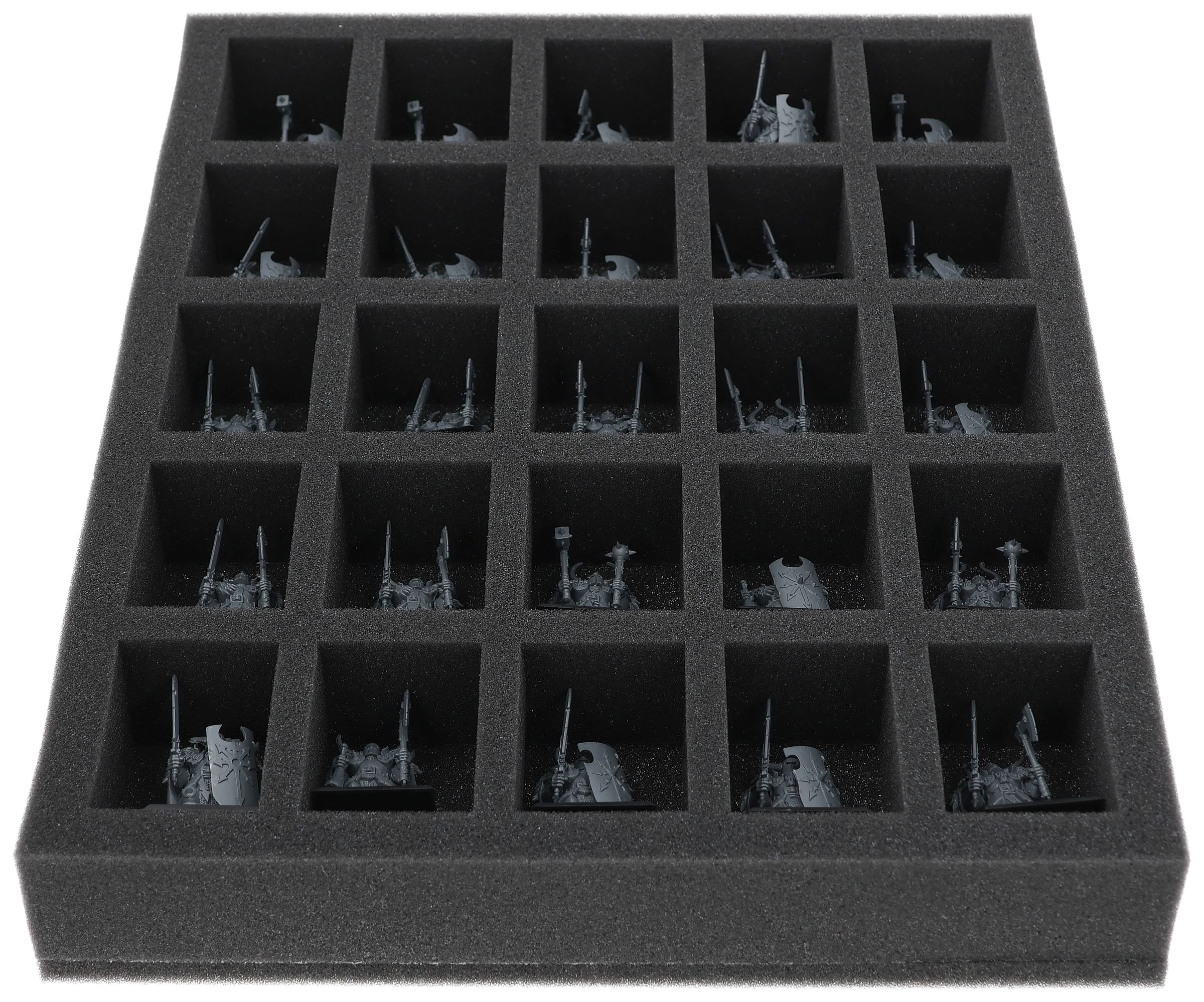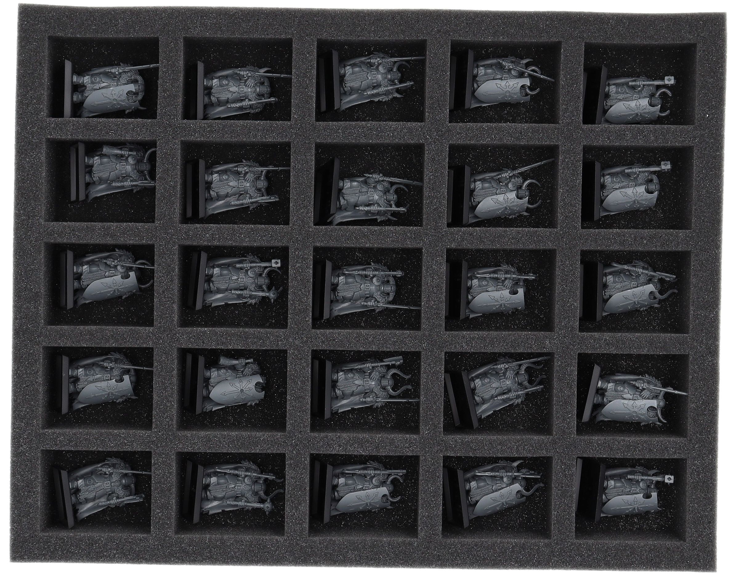 On this Feldherr foam tray you have space for up to 25 miniatures of your army/collection. The insert is especially suitable for storing the Chaos Warriors and similar sized models.