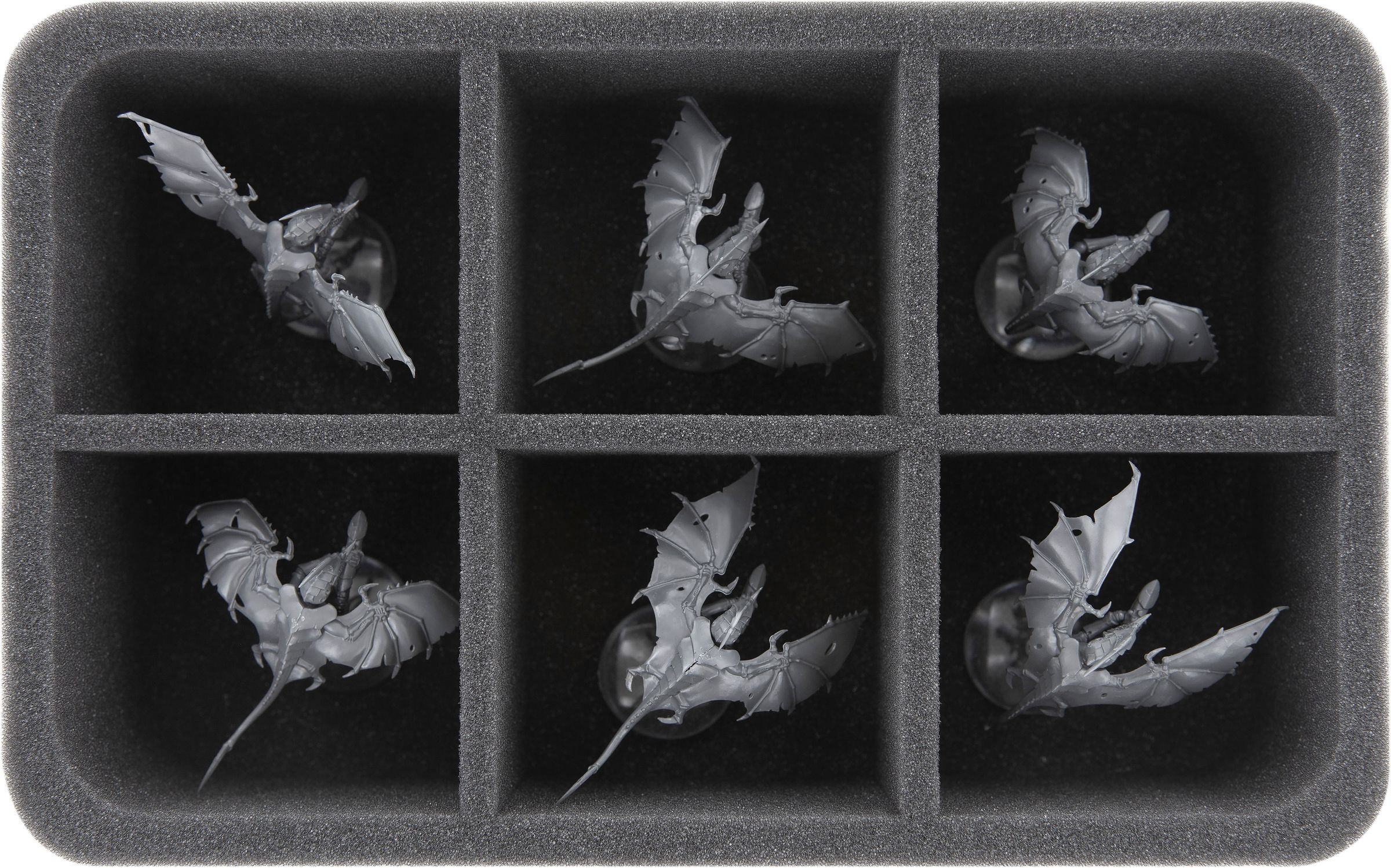 On this Feldherr foam tray you have space for up to 6 miniatures of your army. The insert is especially suitable for storing the Hive Guard, Tyrant Guard, Gargoyles and similar sized models.