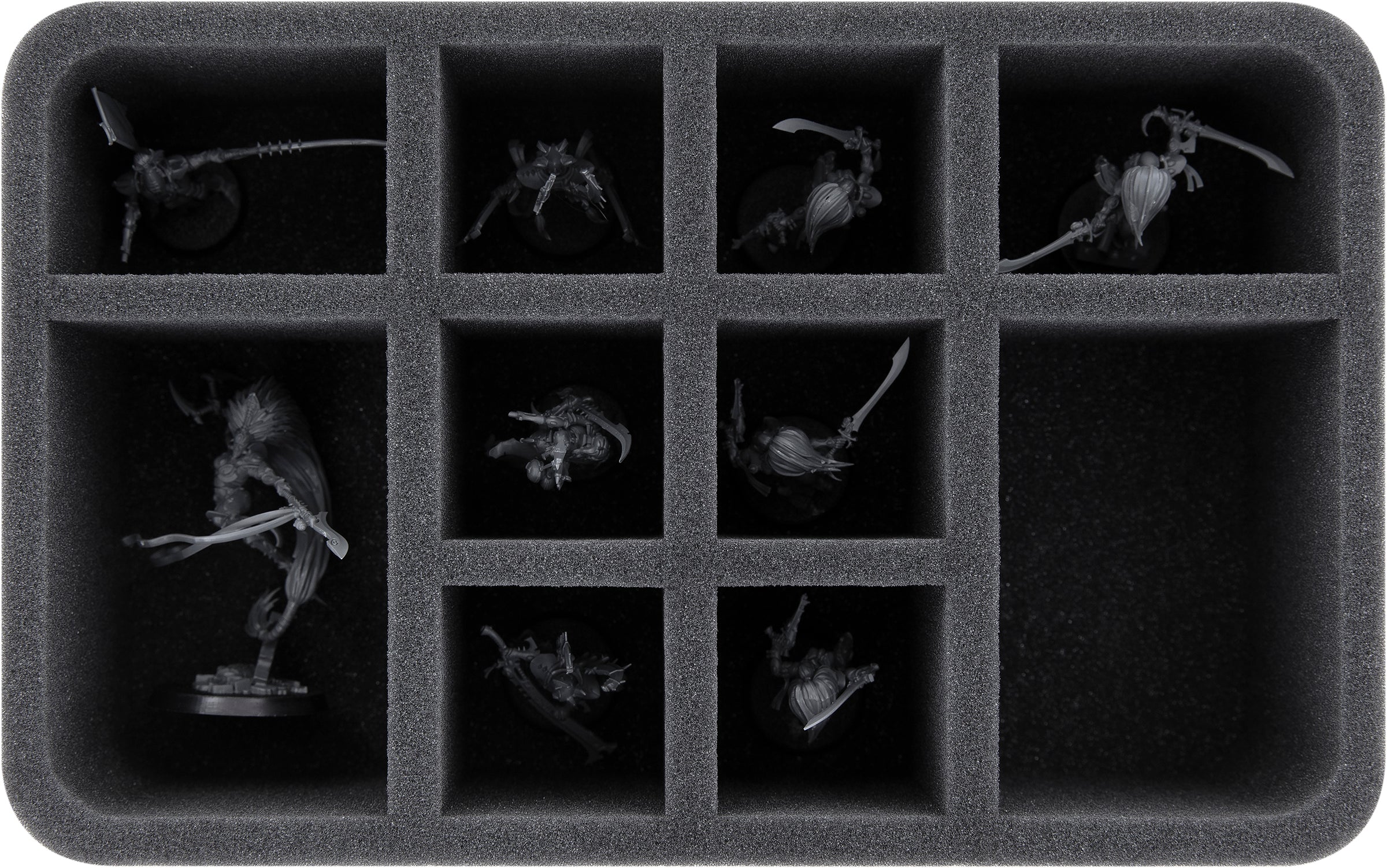 On this Feldherr foam tray you have space for up to 10 miniatures of your army. The insert is especially suitable for storing the Howling Banshees, Jain Zar and similar sized models.