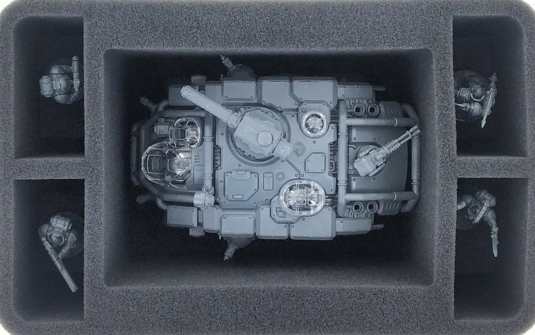 El espuma cubierta incluido completa el conjunto. Garantiza que sus miniaturas estén protegidos de forma óptima por espuma desde todos los lados.