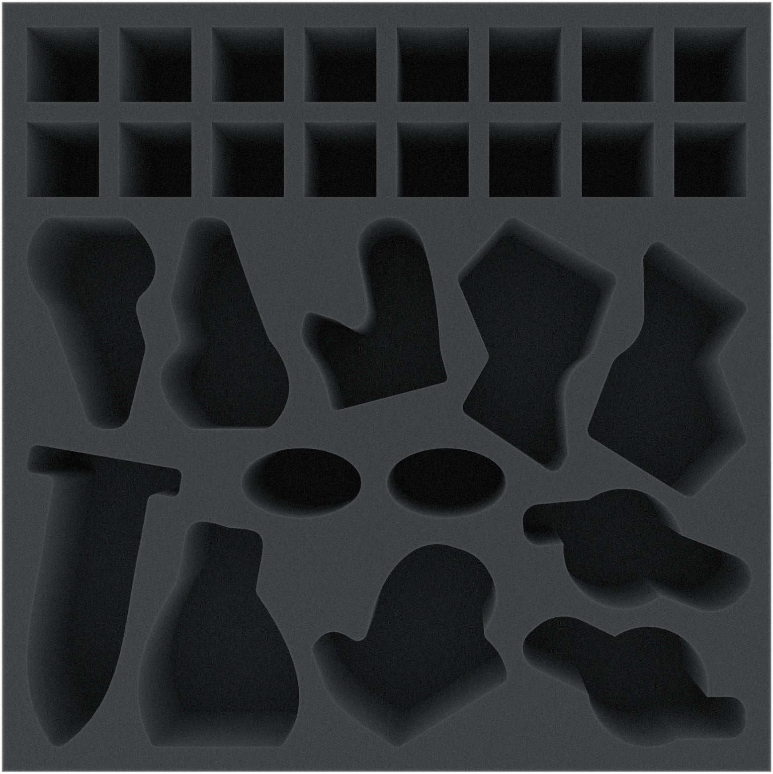 De esta manera, todas las miniaturas están embaladas de forma segura, el material de juego se guarda de forma ordenada y el contenido de su caja está equipado de forma óptima para el transporte.