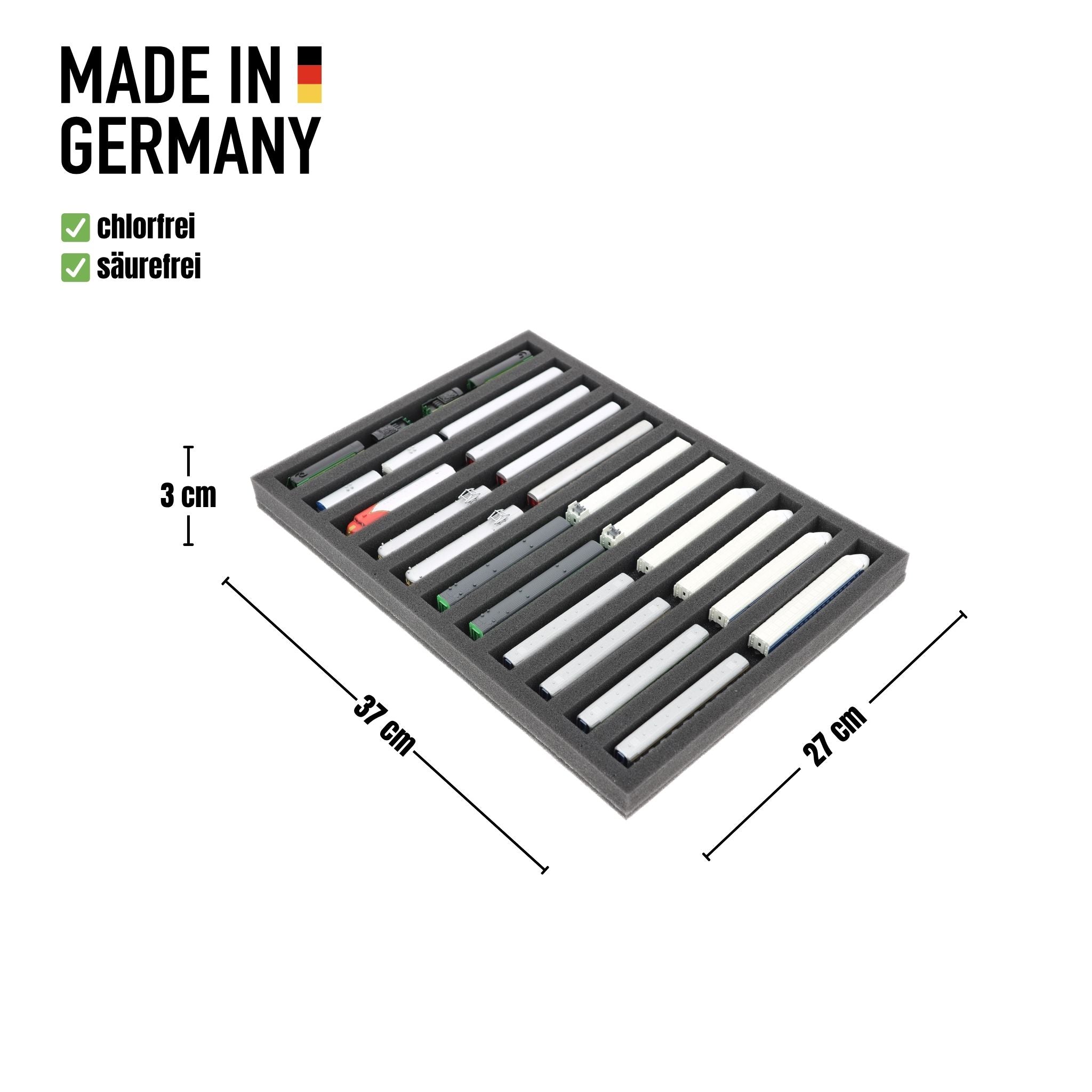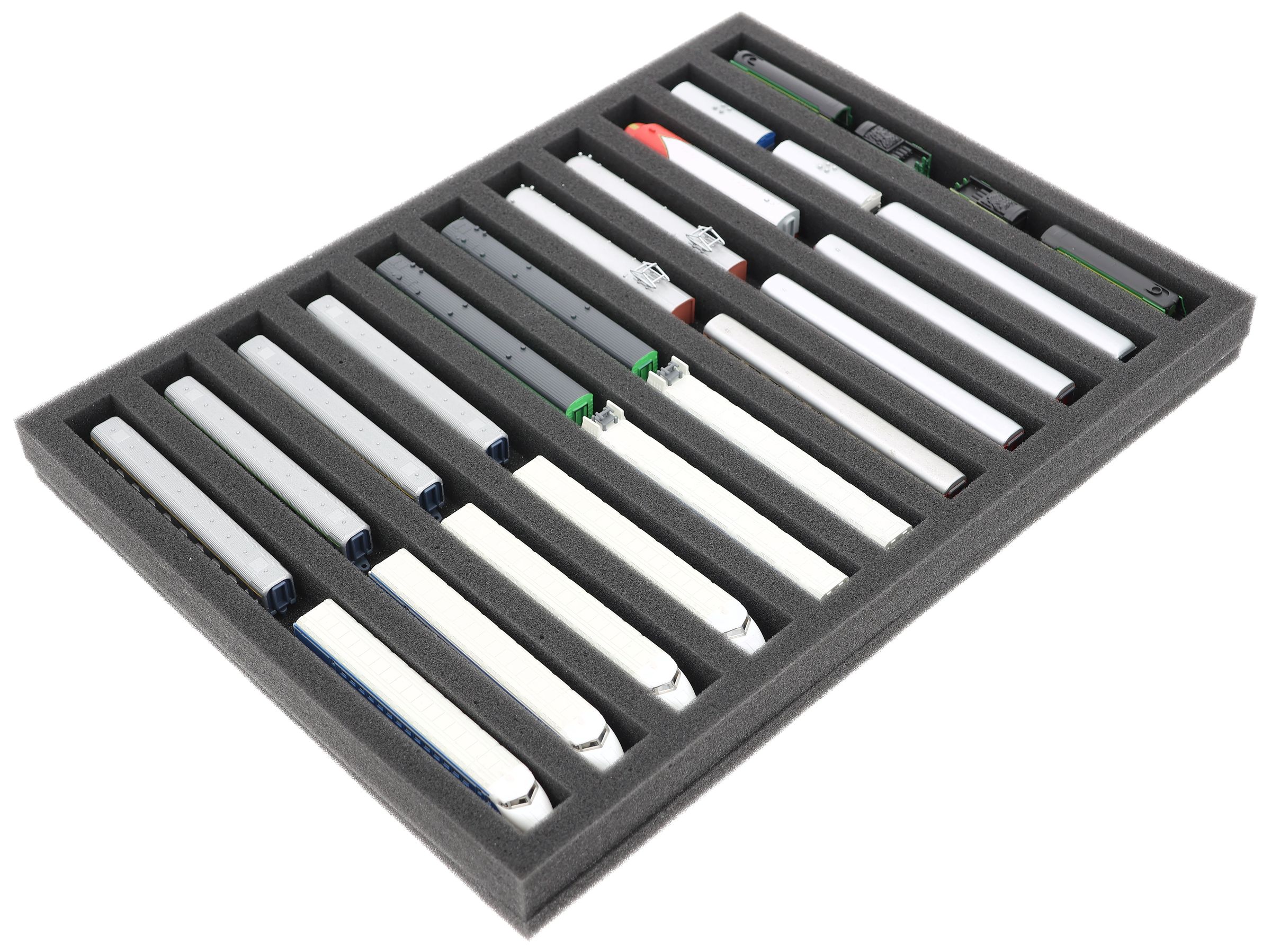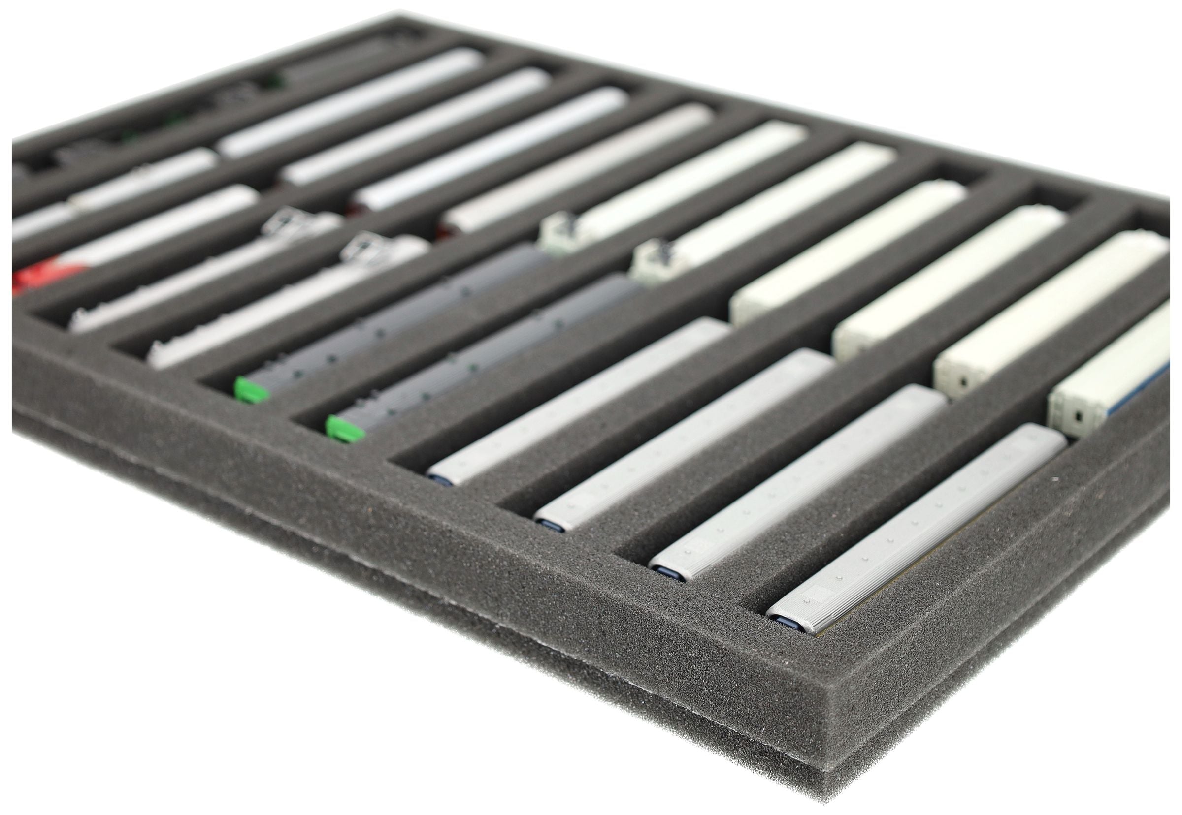 IU030A001 Inserto de espuma Feldherr para maquetas de trenes - escala Z - 11 compartimentos - para almacenamiento horizontal