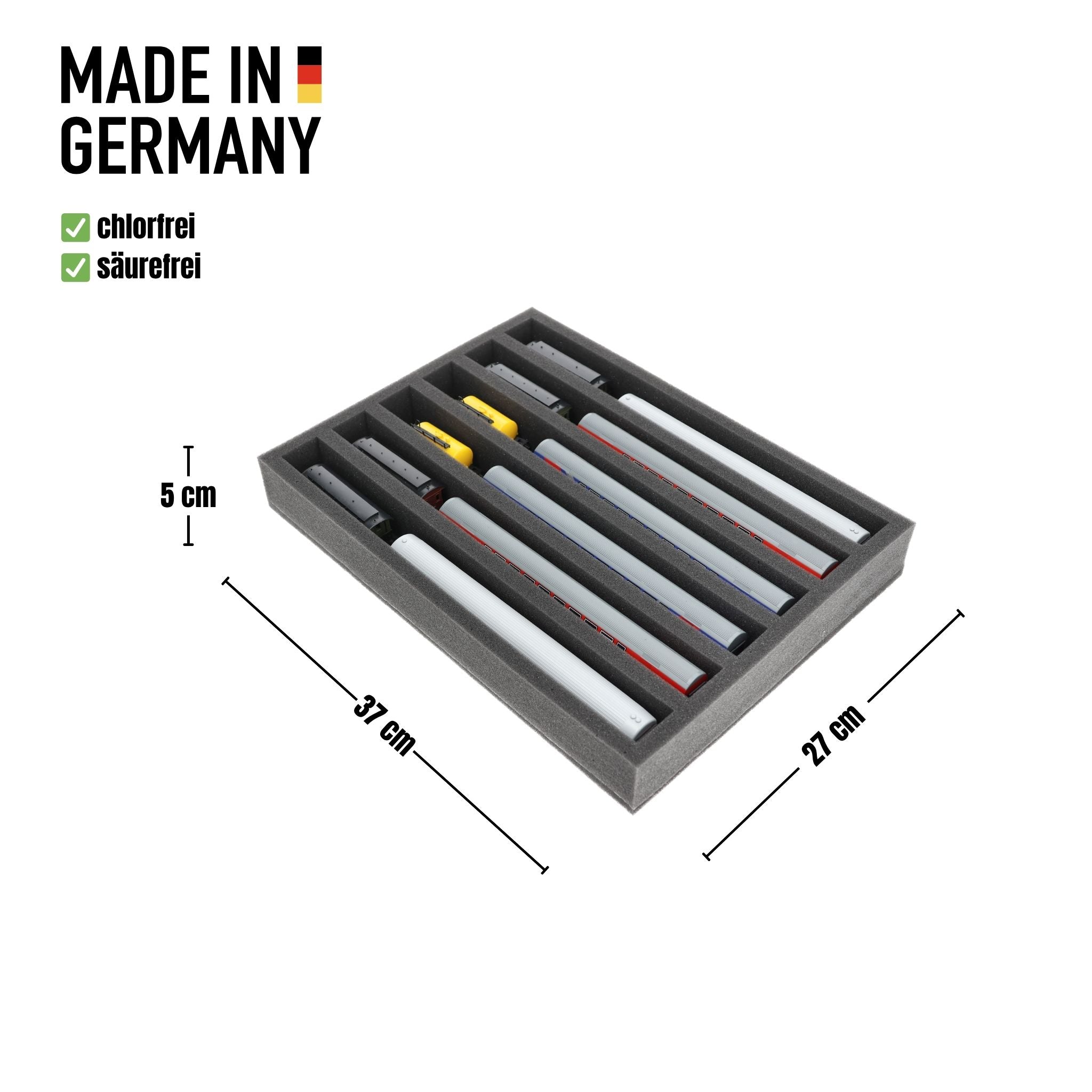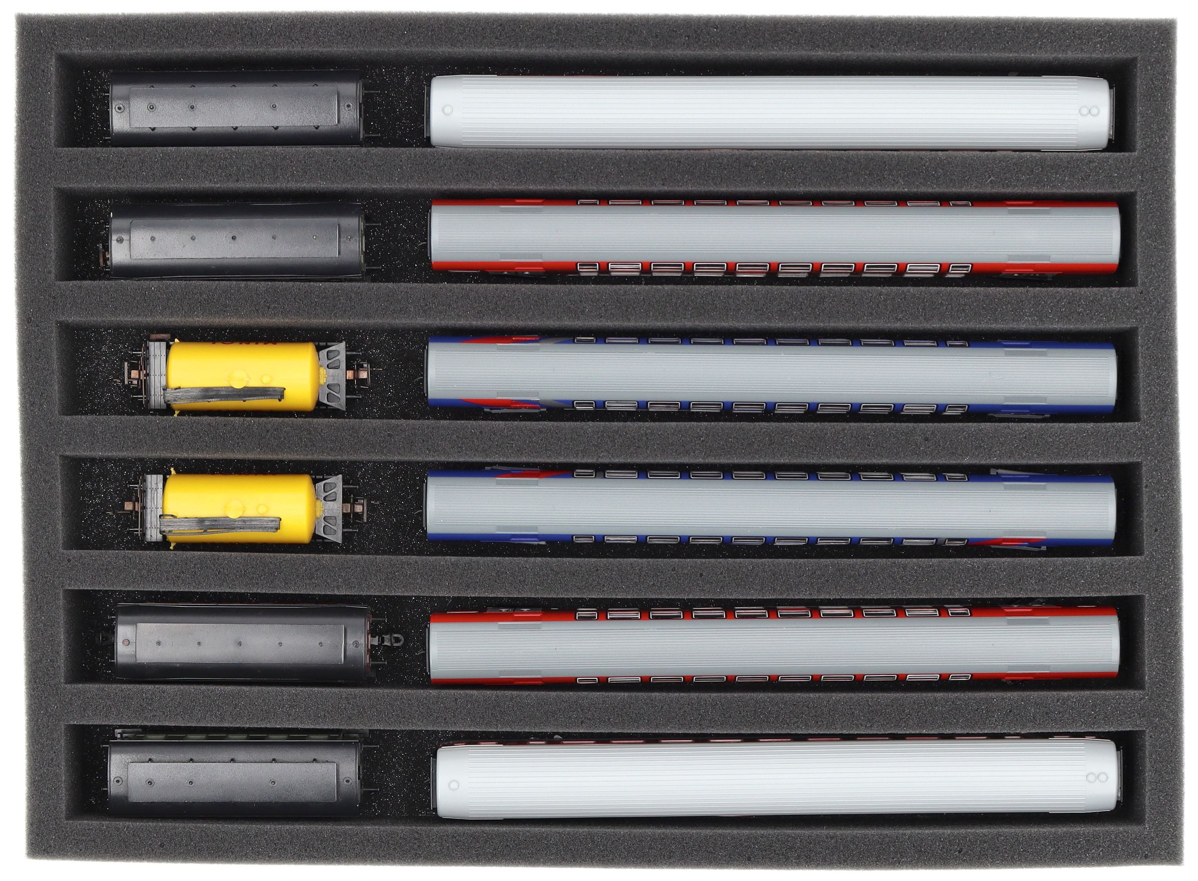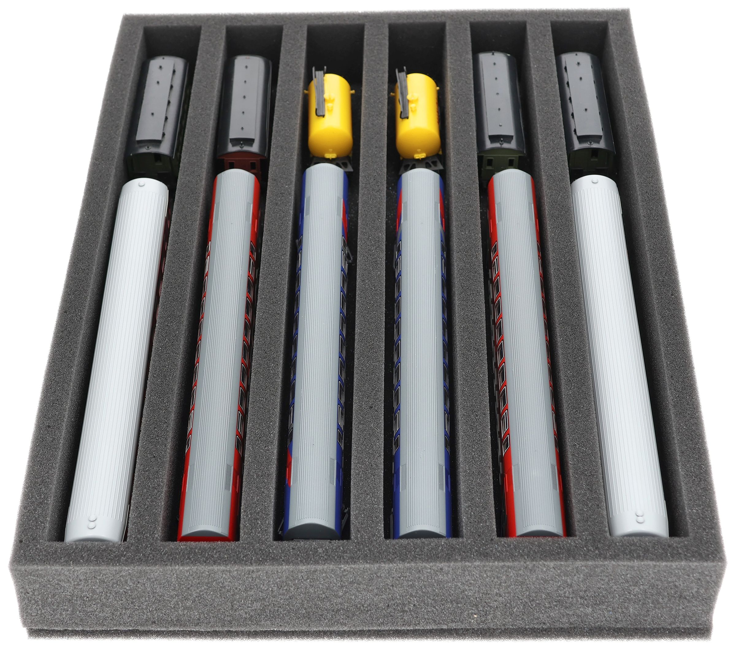 IU050A002 Inserto de espuma Feldherr para maquetas de trenes - escala TT - 6 compartimentos - para almacenamiento vertical