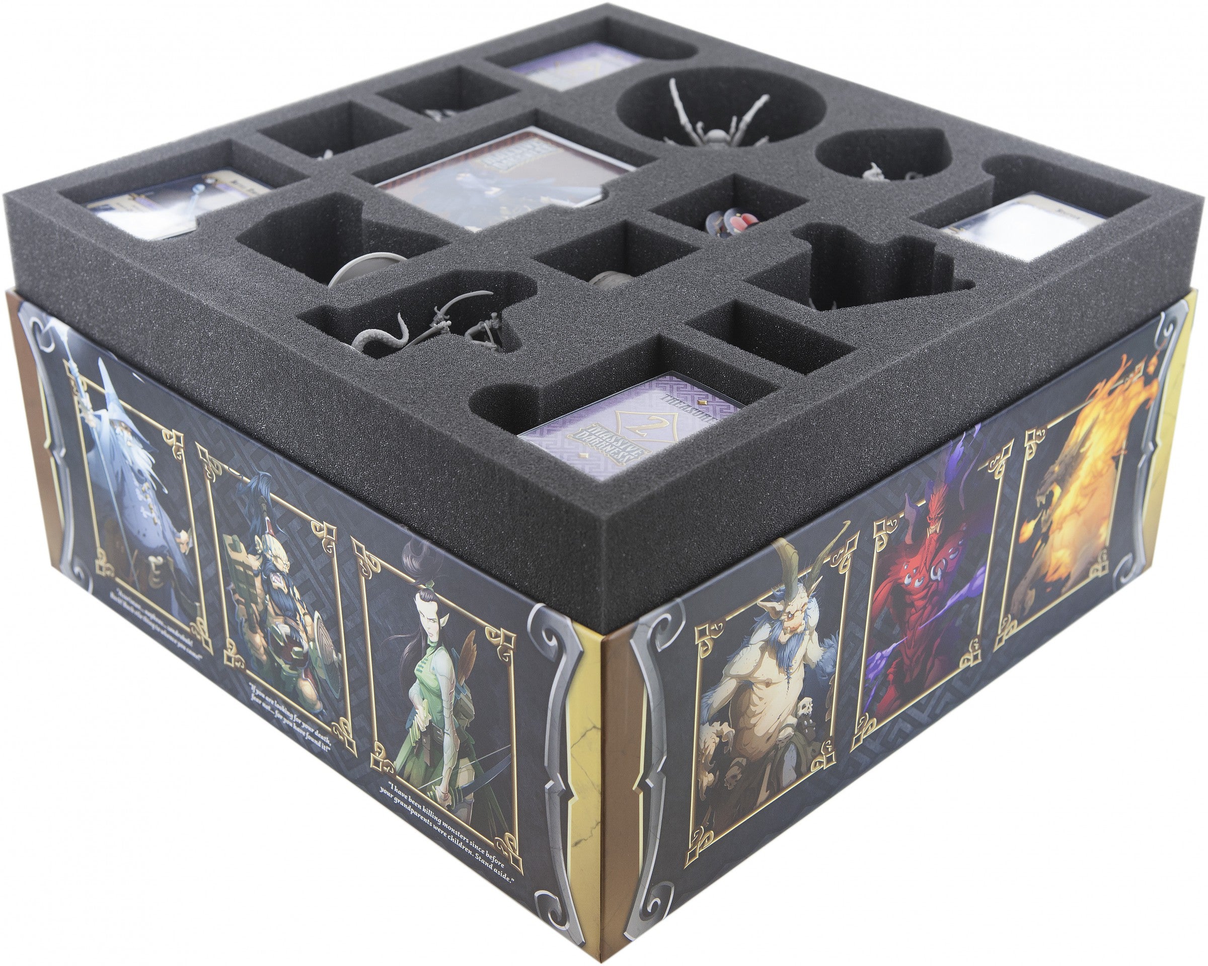 Con este juego podrás almacenar todas las figuras y materiales del juego de mesa Original Massive Darkness. Todas las miniaturas y todo el equipo tienen recortes hechos a medida en las espumas. Así que puedes proteger y ordenar todo el material del juego. Gracias a los compartimentos posicionados que ahorran espacio, usted dispone de espacio para seis unidades adicionales. La espuma se extiende sobre el borde de las cajas de juego de mesa.