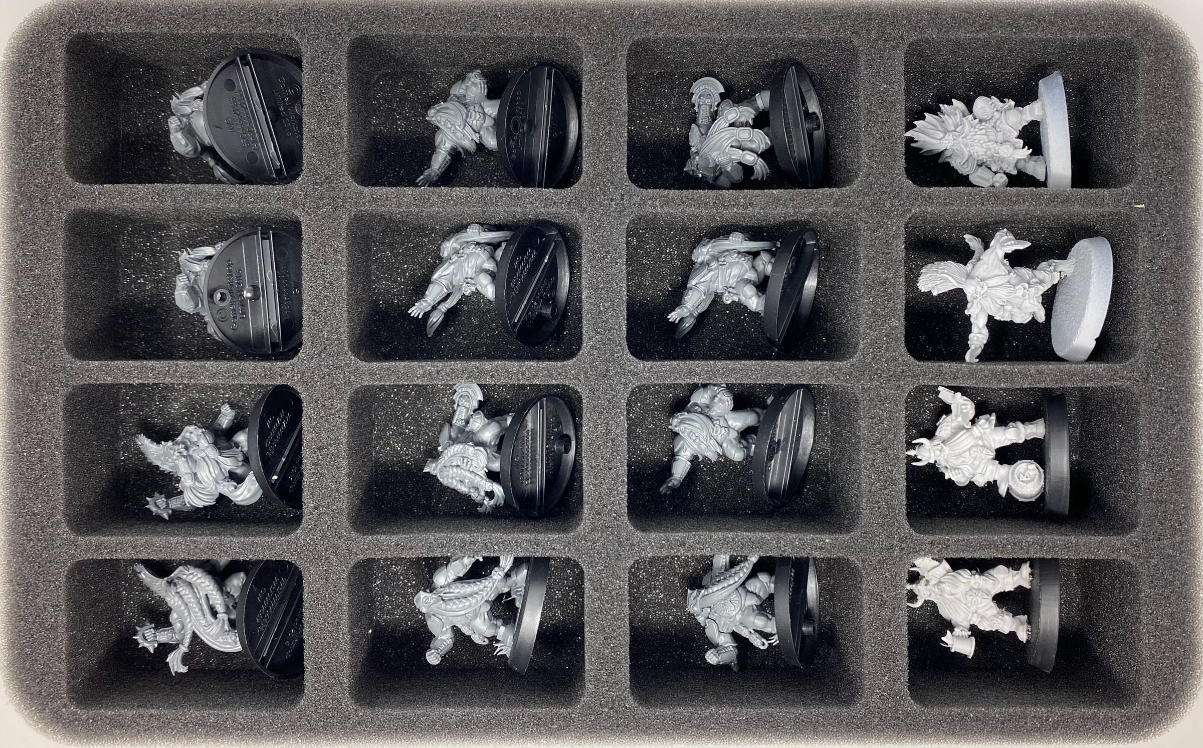 En los 16 compartimentos de esta bandeja de espuma, cada Blitzer, Lanzador, Corredor y cada Lineman de tu equipo Dwarfs Blood Bowl tiene su propio compartimento. Además, todavía hay espacio para el entrenador y los jugadores estrella, o para clasificar los balones y los marcadores.