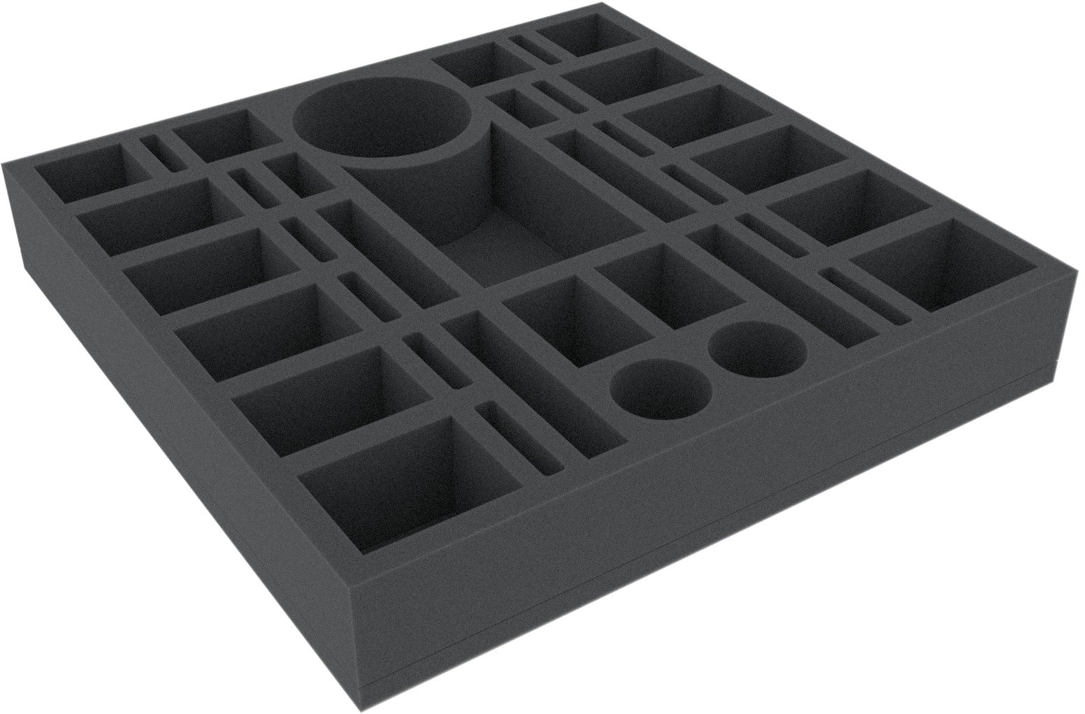 Esta bandeja de espuma está dividida en 38 compartimentos de diferentes tamaños. Está especialmente indicado para el almacenamiento seguro de miniaturas de diversos juegos de mesa. También se puede utilizar para clasificar accesorios como fichas, cartas y dados.