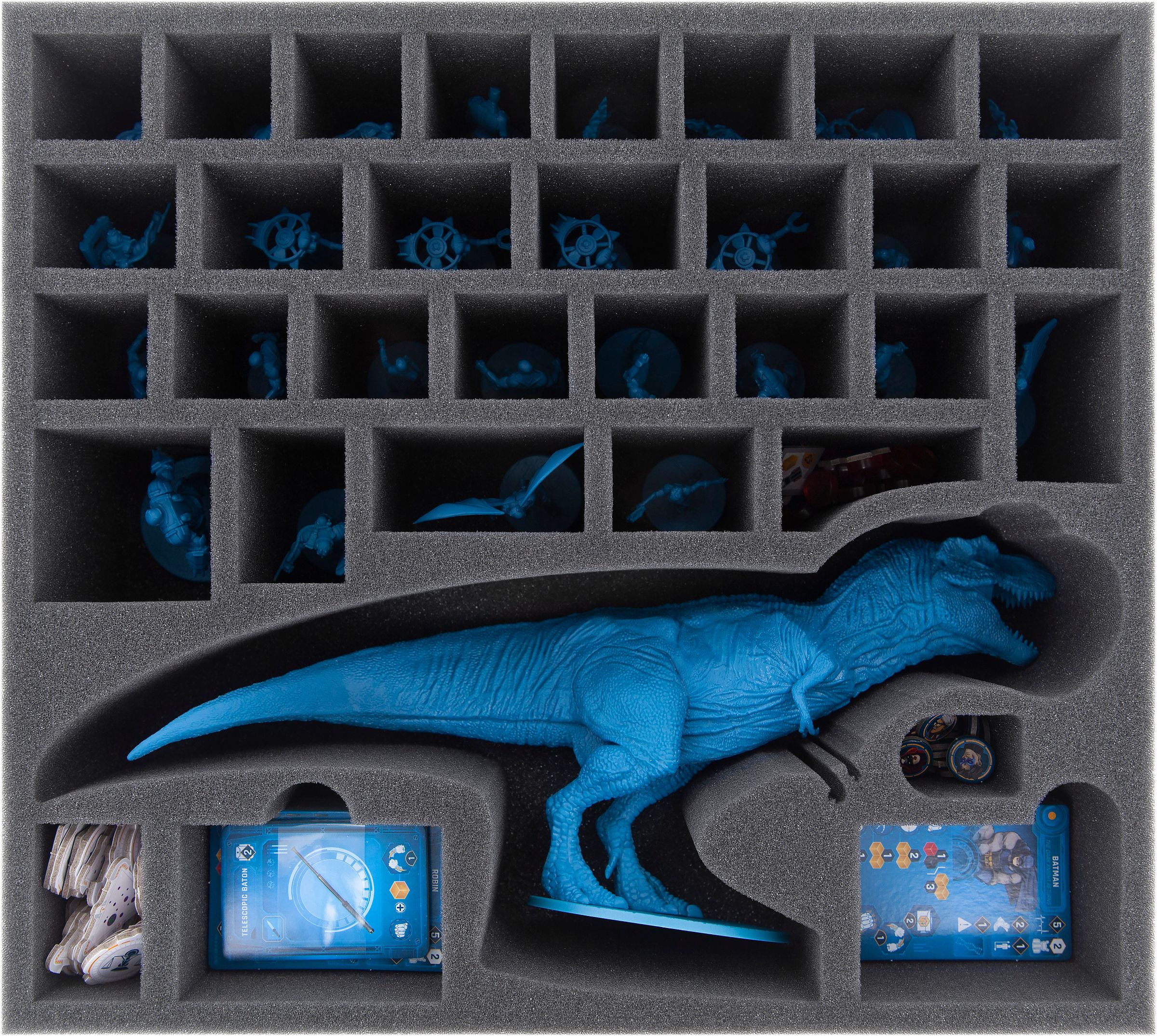 A Batman y sus aliados se les asignan compartimentos hechos a medida. Cada figura se encuentra rodeada de espuma blanda en su propio compartimento y, por lo tanto, está protegida de forma óptima contra los daños. Y no hay que pasarlo por alto, en qué compartimento se coloca el gigantesco T-Rex.