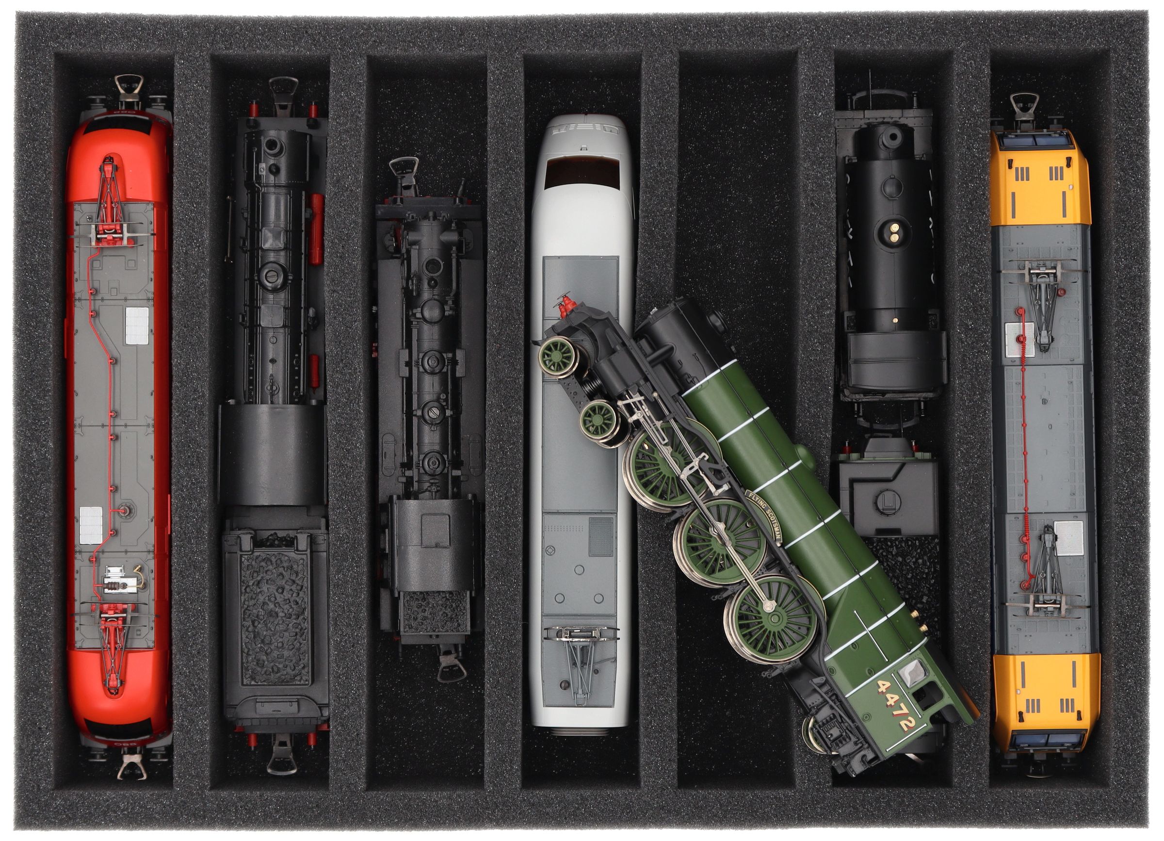 DD065A004 Inserto de espuma Feldherr para maquetas de trenes - escala 00 - 7 compartimentos - para almacenamiento vertical