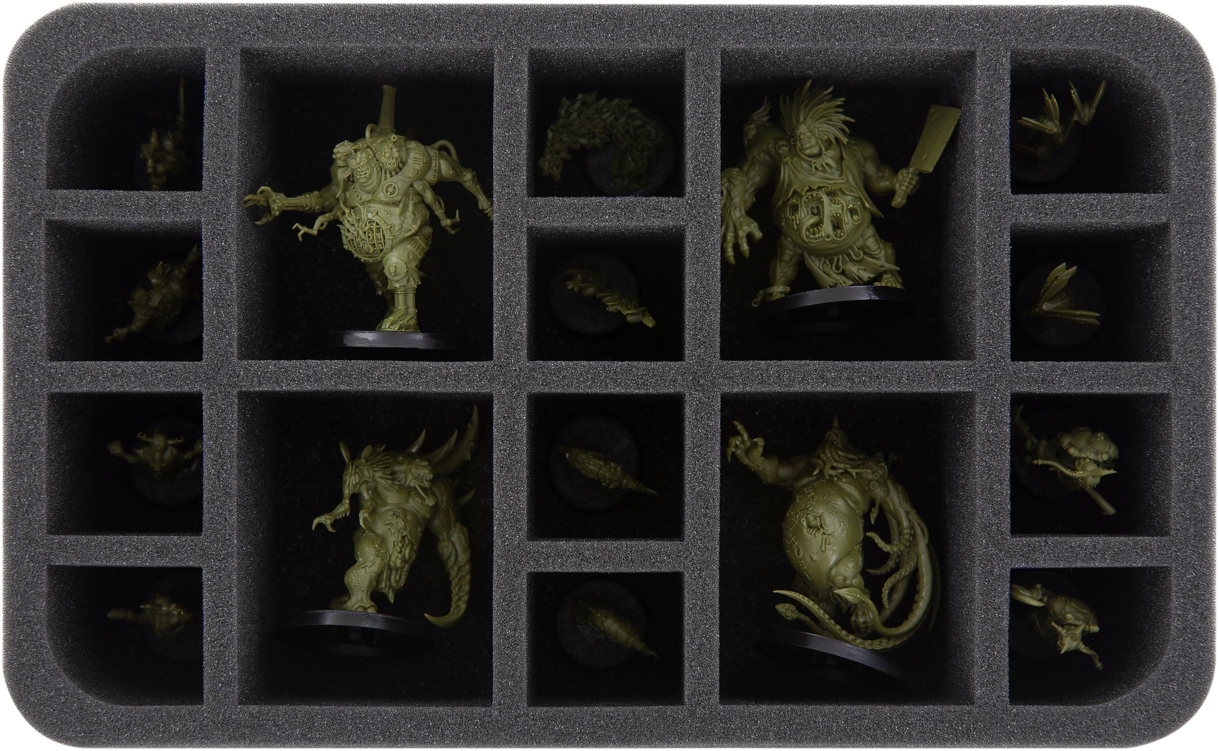 Porque no sólo en la Kill Zone cada uno de los guerreros es de especial importancia, cada uno de sus modelos tiene su propio compartimiento. Están completamente rodeados de espuma y, por lo tanto, protegidos de forma óptima contra daños durante el transporte. Las cabezas y las armas se quedan donde pertenecen, al menos hasta la batalla. También evita que las figuras se deslicen o choquen entre sí. Esto preserva los colores de las miniaturas pintadas.