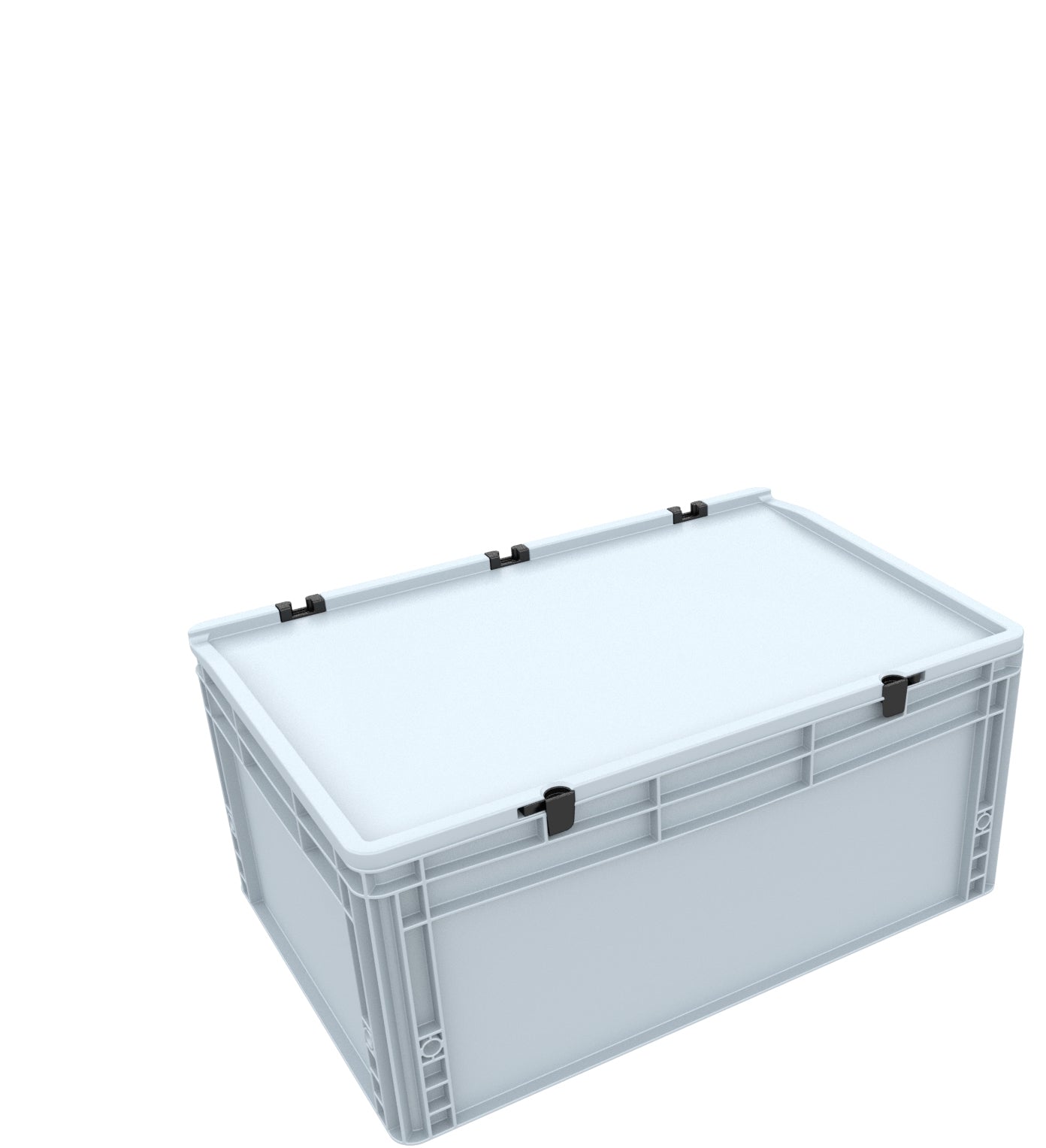 Gracias a su sistema de bisagras de fácil manejo, el eurocontenedor de AUER Packaging puede cerrarse en un abrir y cerrar de ojos. De este modo, su mercancía queda protegida de forma óptima contra daños durante el transporte y la contaminación.