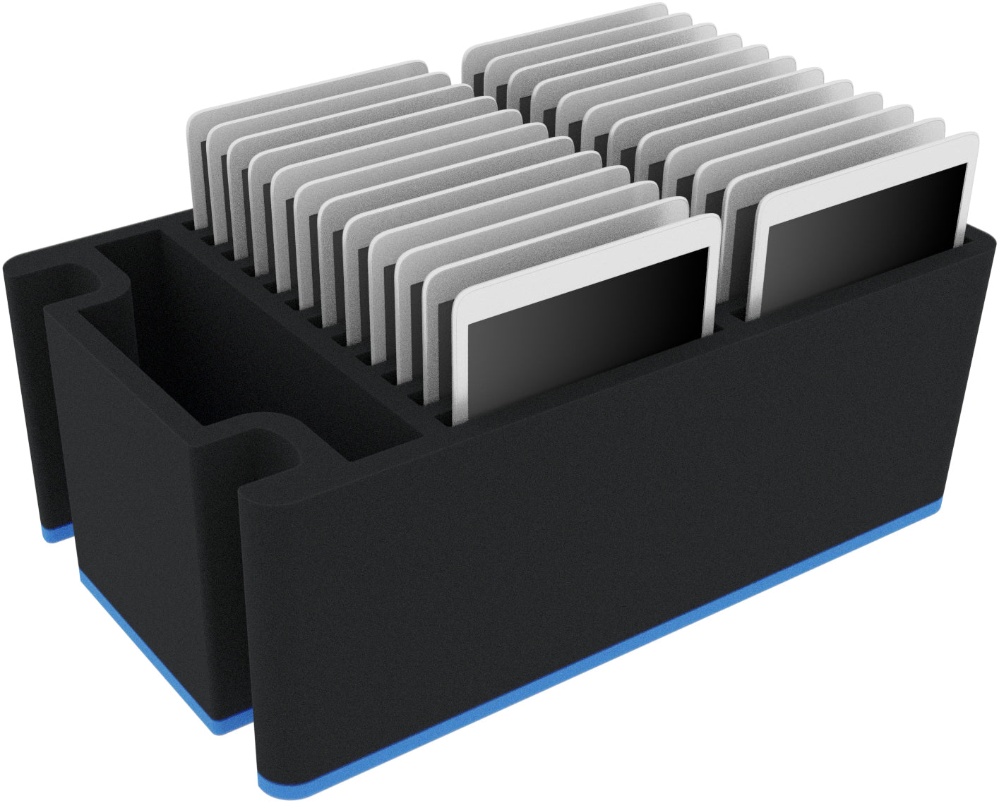 This Feldherr foam insert is made of firm and at the same time shock-absorbing PE rigid foam. It offers space for 24 iPads, as well as Android and Windows tablets up to a size of 11".