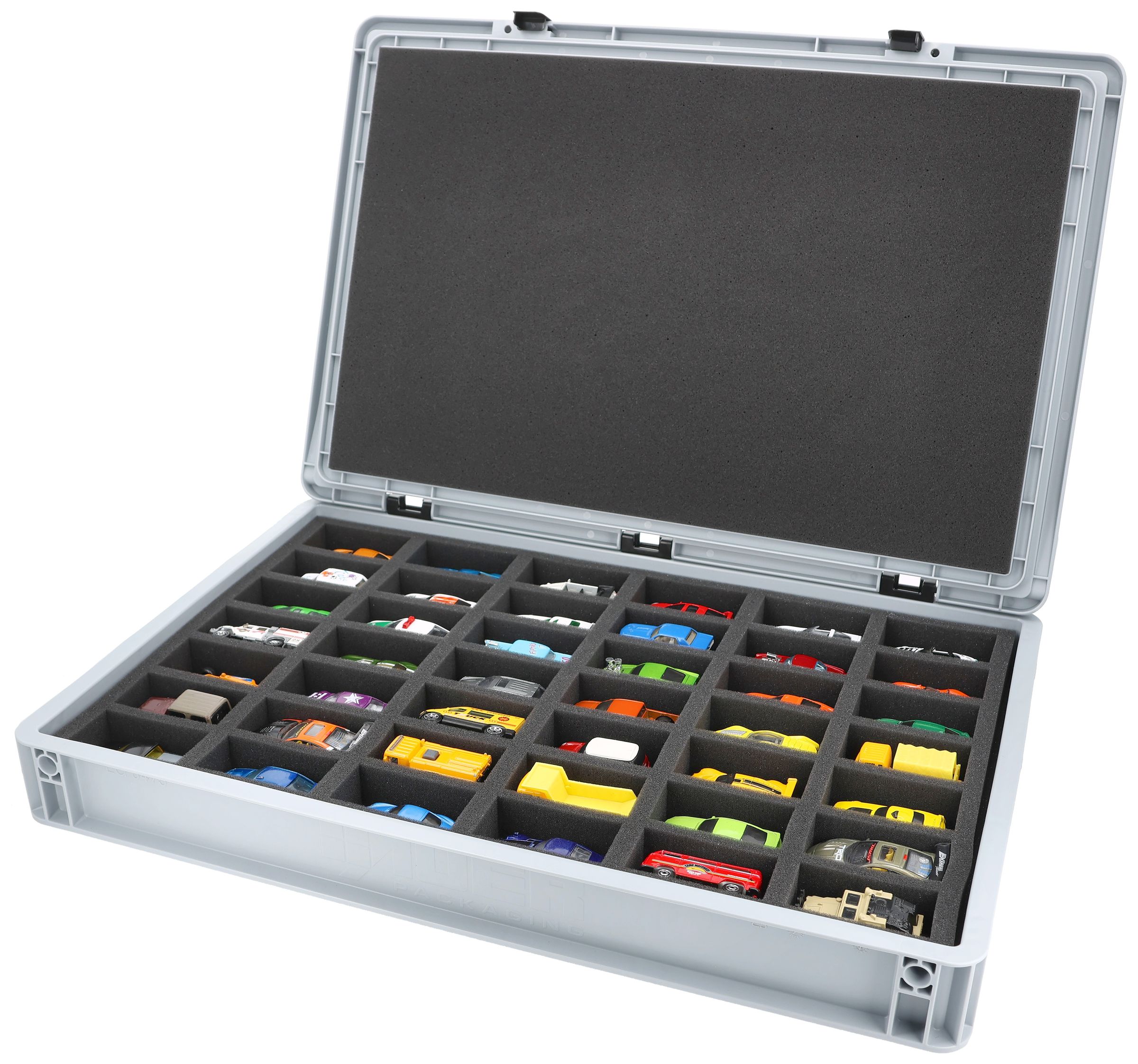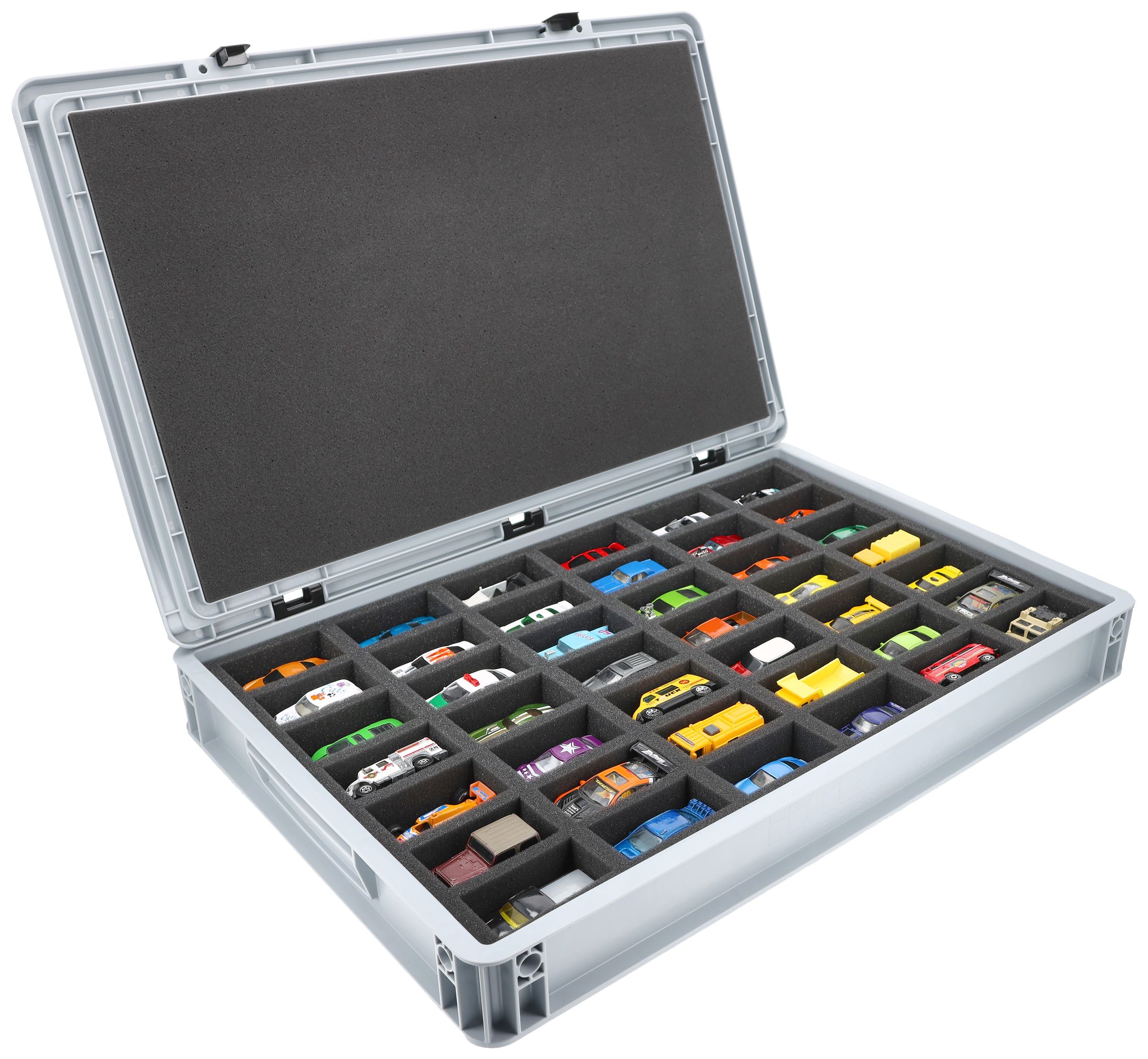 - Inserto de espuma de precisión con 42 compartimentos para vehículos de fundición a presión a escala 1:64 - dimensiones de los compartimentos aprox. 80 x 42 x 30 mm