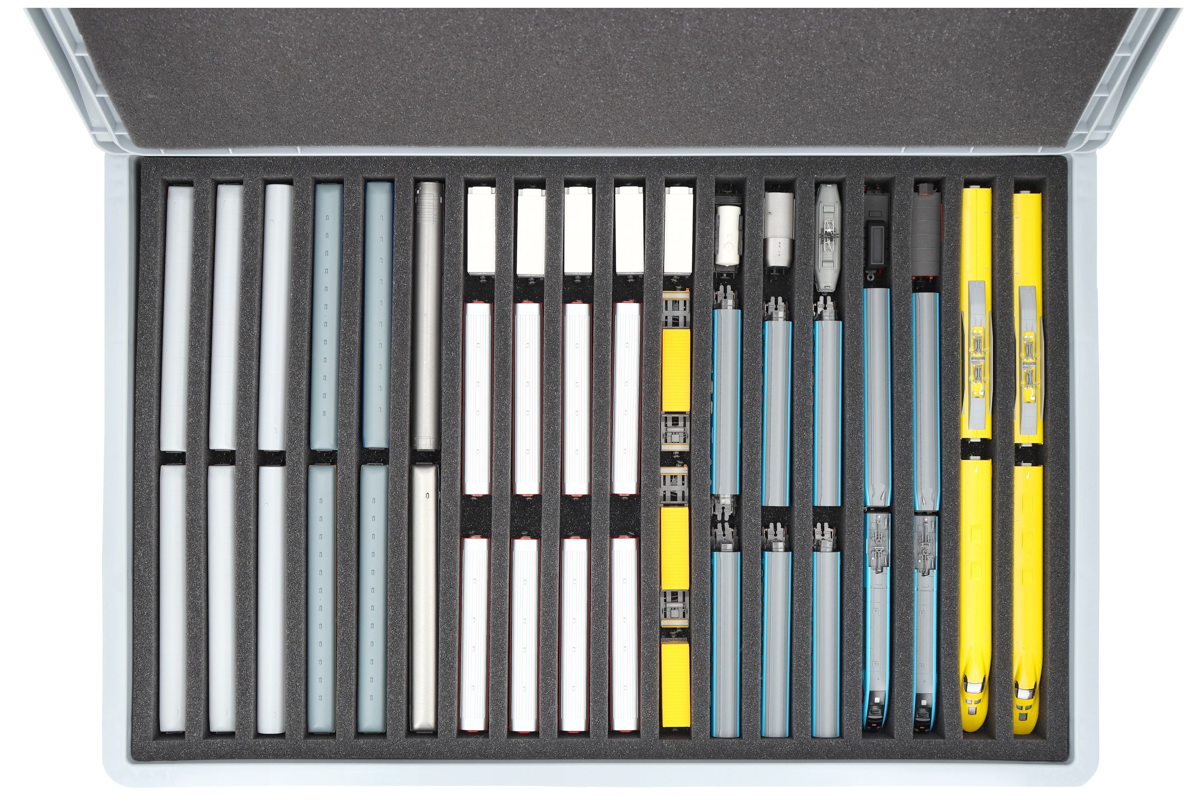 - 18 compartimentos - inserto de espuma para guardar locomotoras, vagones y vehículos en posición vertical