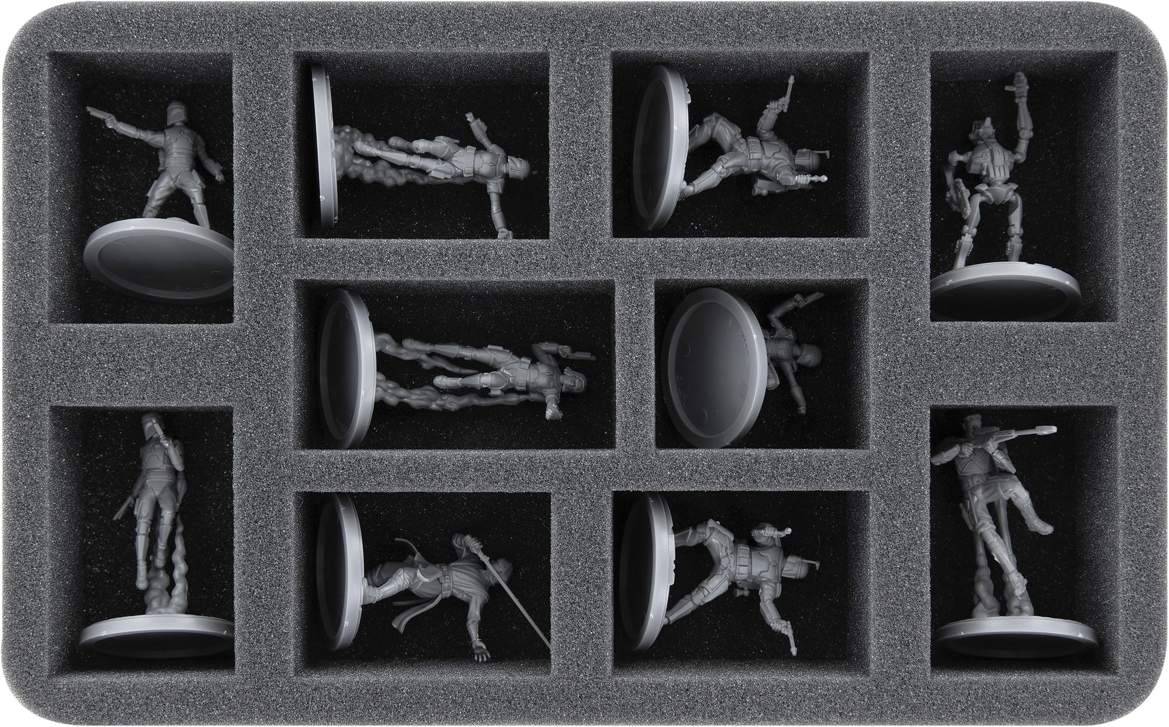 - 1 Half-Size bandeja de espuma con 10 compartimentos para miniaturas voluminosos sobre peanas de 40 mm como Anakin Skywalker, Bo-Katan Kryze y miniaturas con dimensiones similares (HS050A134)