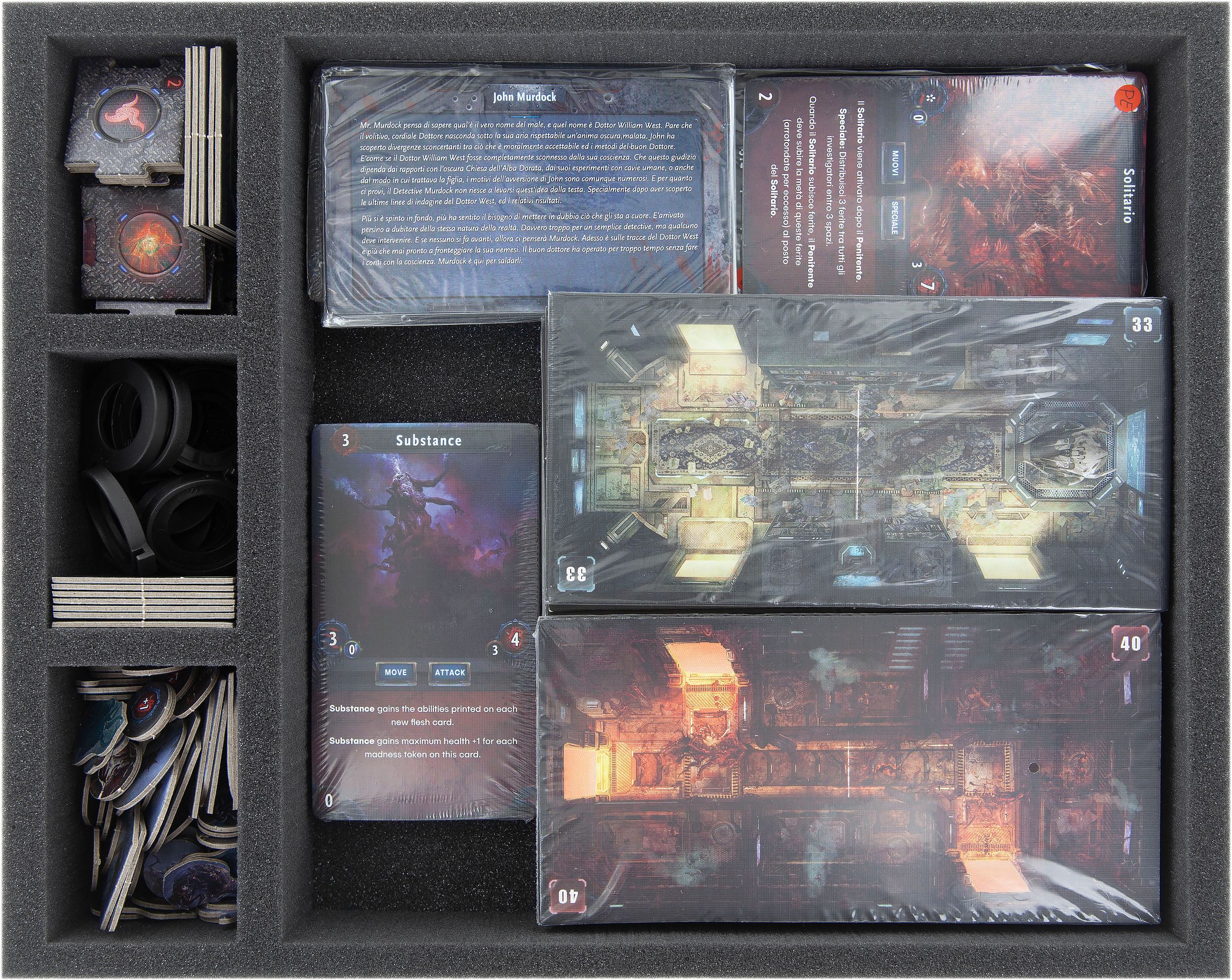 Para que no descienda a la locura cuando intente clasificar y almacenar su material de juego, Feldherr montó una caja de almacenamiento Double-Size con las bandejas de espuma correspondientes para "Deep Madness".