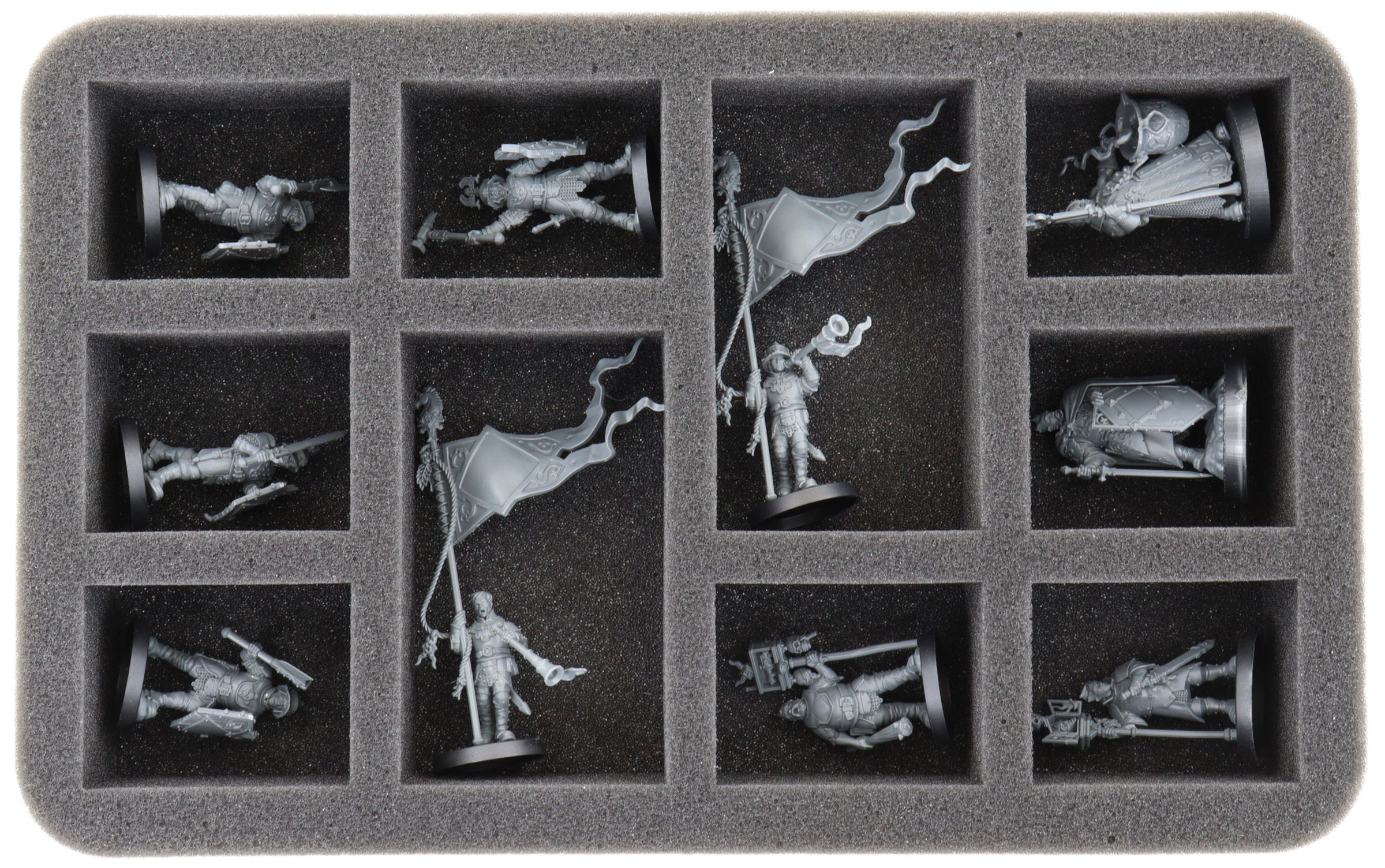 • 1 Half-Size bandeja de espuma con 10 compartimentos para Freeguild Steelhelms, Freeguild Marshal, Alchemite Warforger y miniaturas con dimensiones similares (HS045A030)