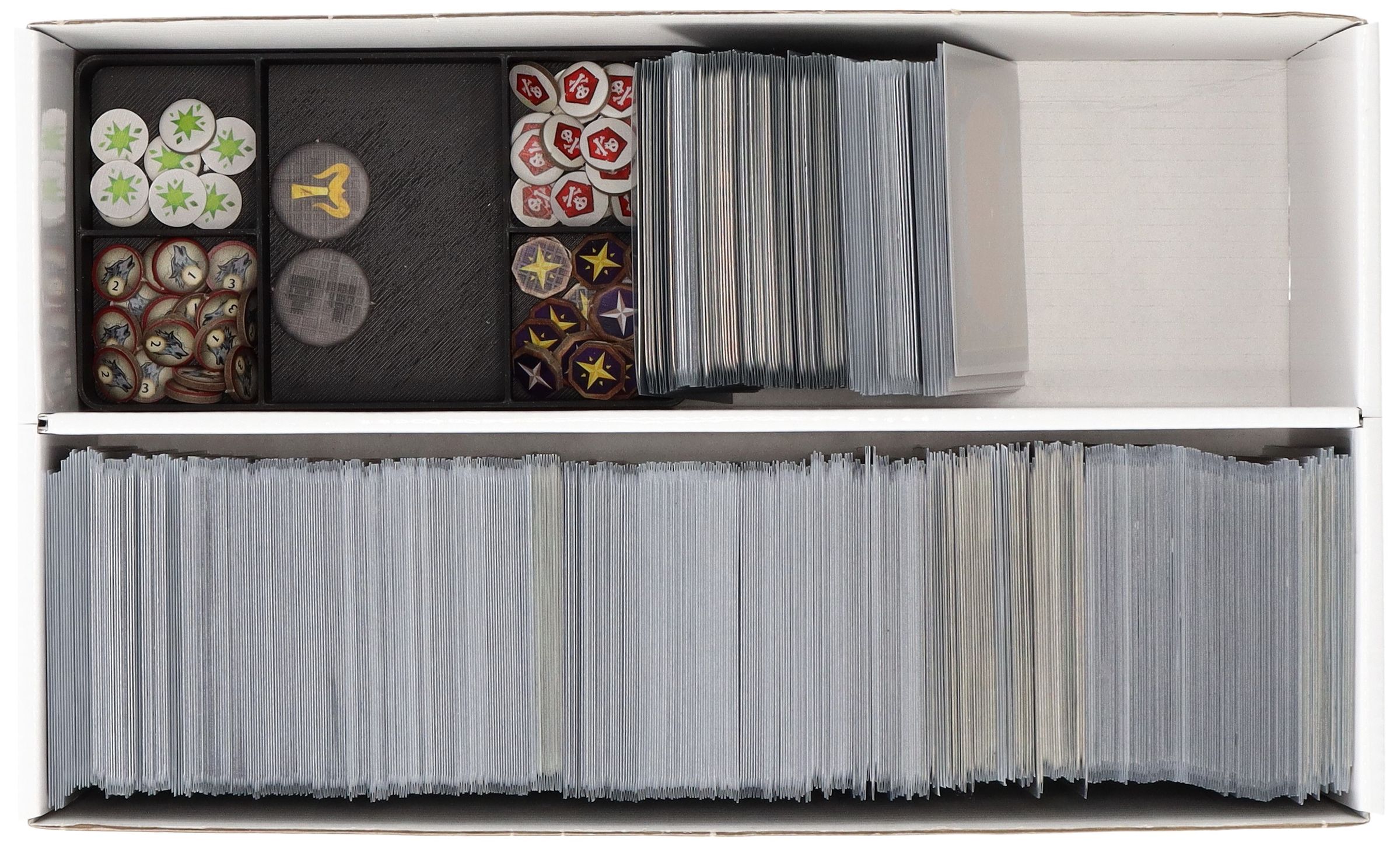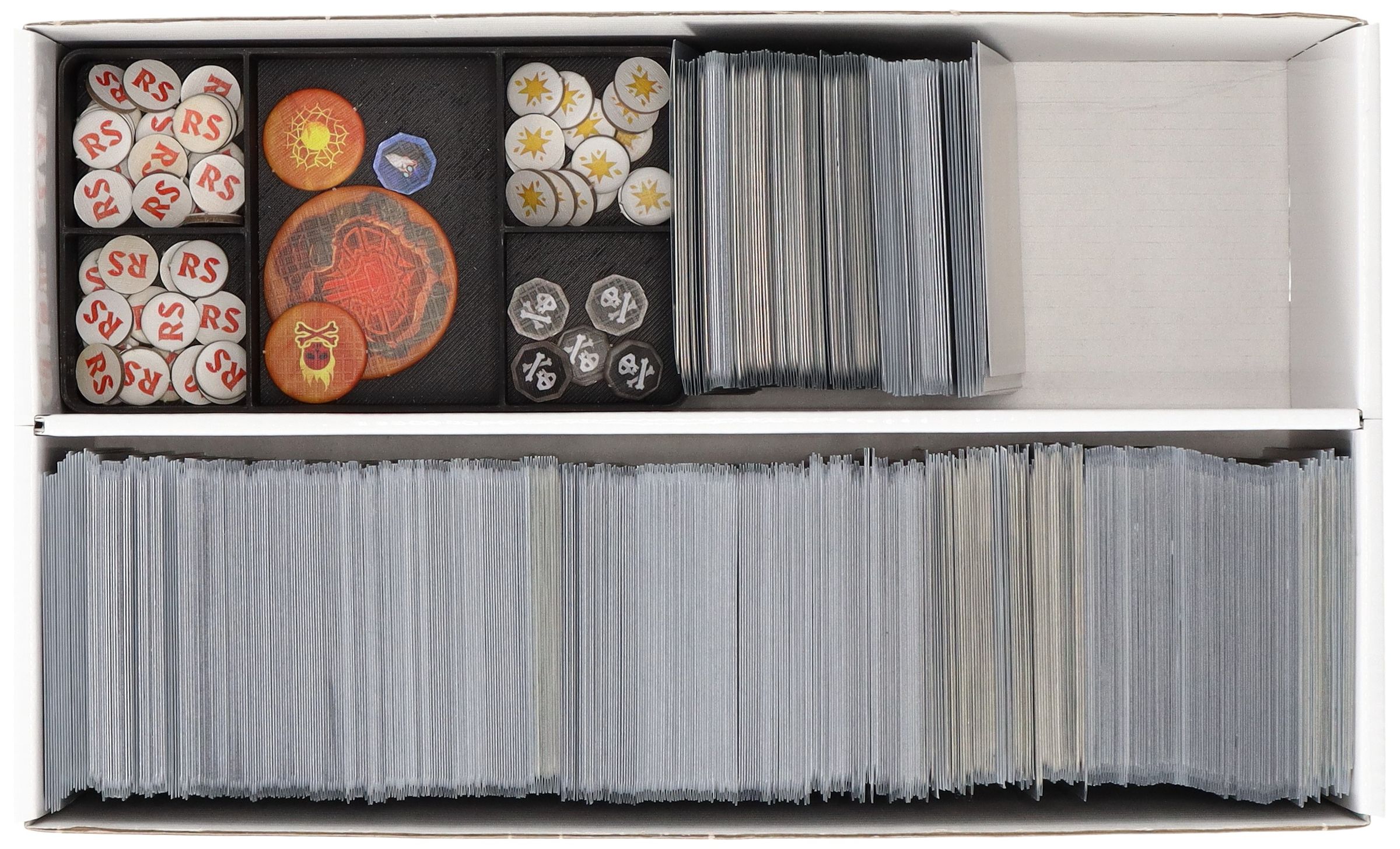 - Puedes guardar material de juego y cartas de tamaño pequeño en el Storage Box TCHS105 con inserciones Organizer.