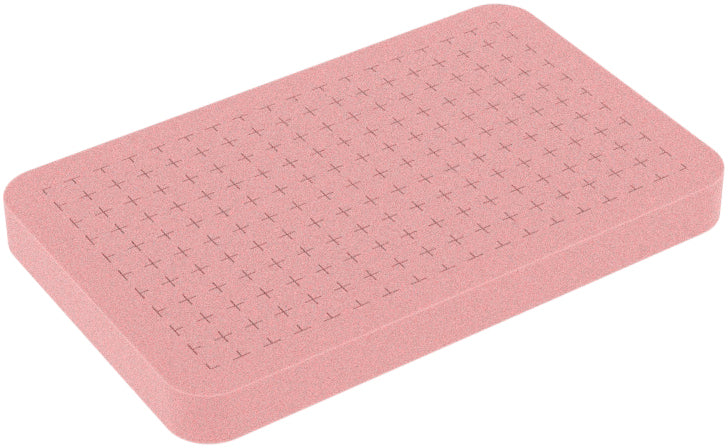 Esta espuma está perforada con un raster de 14 mm x 14 mm. Un borde circunferencial no está perforado y aumenta la estabilidad de la pieza de espuma ajustada. La rejilla permite el ajuste sin herramientas de las plantillas de espuma a sus necesidades. El artículo se entregará sin lámina inferior de espuma. Como fondo ofrecemos por ejemplo los artículos HS010BESD o HS020BESD.