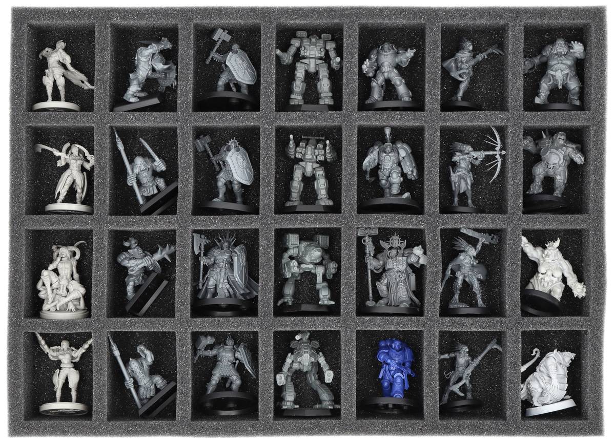 Robuste Eurobox mit passgenauer Schaumstoffeinlage für 28 Tabletop-Miniaturen - schützt deine Figuren beim Transport und hält sie ordentlich sortiert