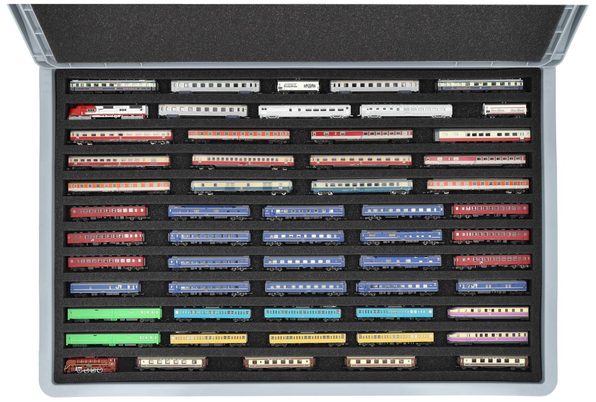 Robuste Eurobox 60 x 40 cm mit Schaumstoffeinlage (12 Fächer) für Spur Z Modelle - ideal für den sicheren Transport und die liegende Aufbewahrung von Loks und Waggons