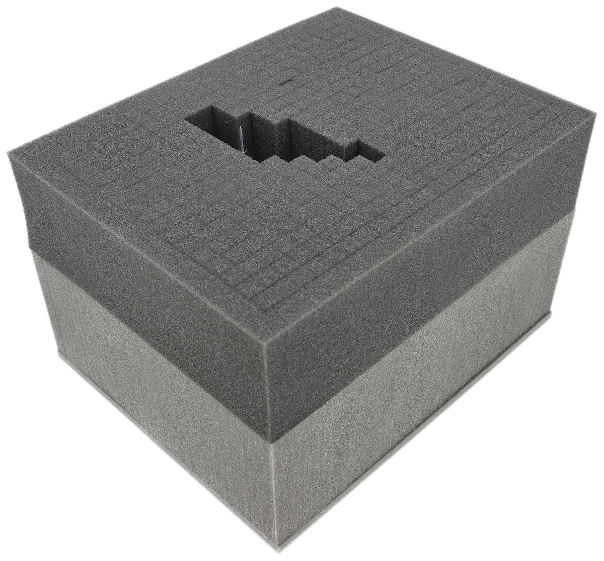 Die Full-Size-Schaumstoffeinlage hat die Abmessungen: 345 mm x 275 mm x 125 mm Gesamthöhe (115 mm Nutzungshöhe + 10 mm Boden).